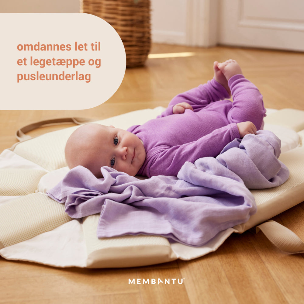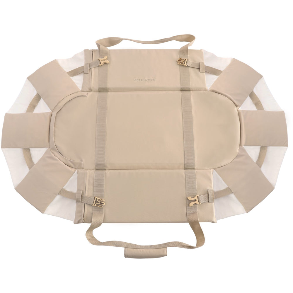 Discover the versatile MEMBANTU Nature Carrycot, ideal for your child's comfort and stimulation. Designed to fit Membantu hammocks and strollers longer than 70 cm, this carrycot seamlessly converts into a play mat. Crafted with a water-repellent polyester exterior and a soft, organic cotton interior, it ensures safety and comfort up to 9 kg. It also features a handy fabric loop for secure stroller attachment, enhancing its functionality and storage potential while fostering an engaging, educational environment for your little one.
