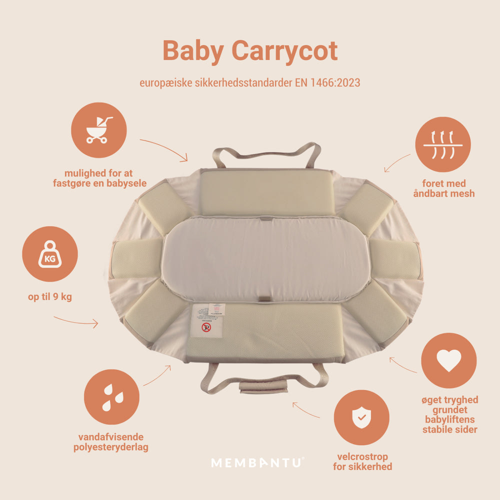 - Internal airmesh that ensures optimal ventilation when baby's face comes into contact with the sides of the carrycot