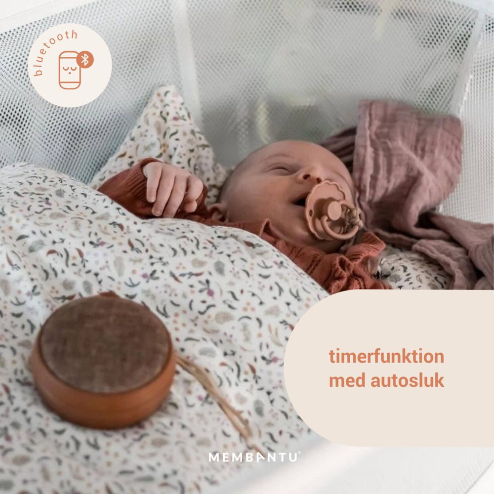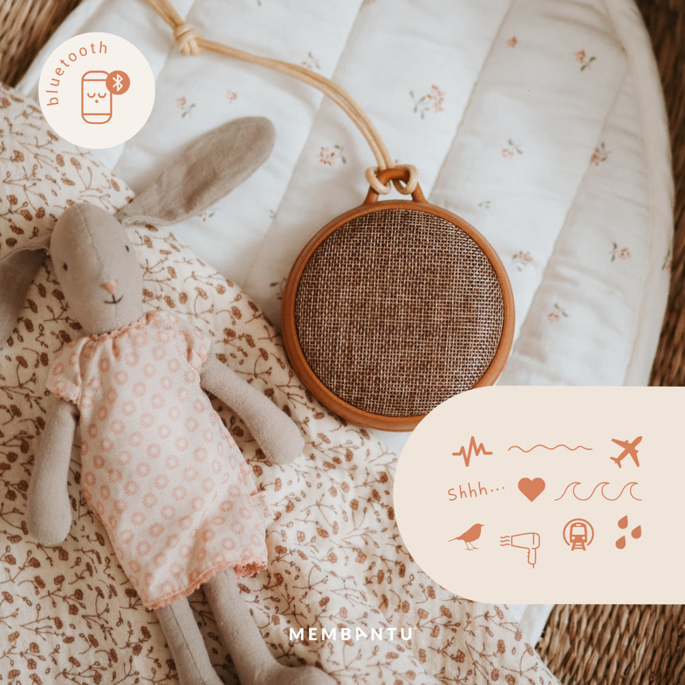Introduce comforting sounds to your child's environment with the MEMBANTU Wood White Noise Speaker Echo01. Crafted from eco-friendly bio-based materials with a soft, cotton strap for easy portability, this Bluetooth-enabled white noise speaker offers 10 soothing pre-programmed sounds to calm and entertain your baby. Effortlessly choose between these sounds or stream your child’s favorite tunes directly via Bluetooth. Designed for versatility and long-lasting use, it runs for up to ten hours on a full charge, ensuring peaceful sleep or playful days, wherever you are!