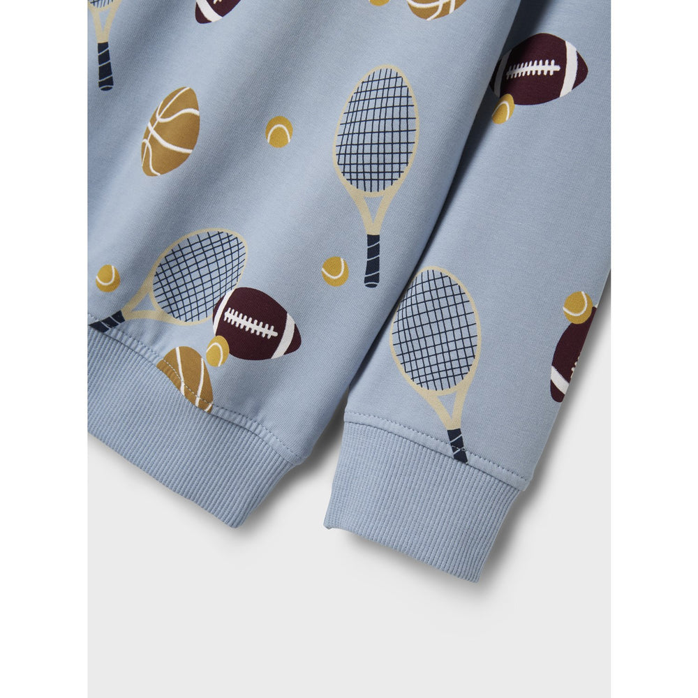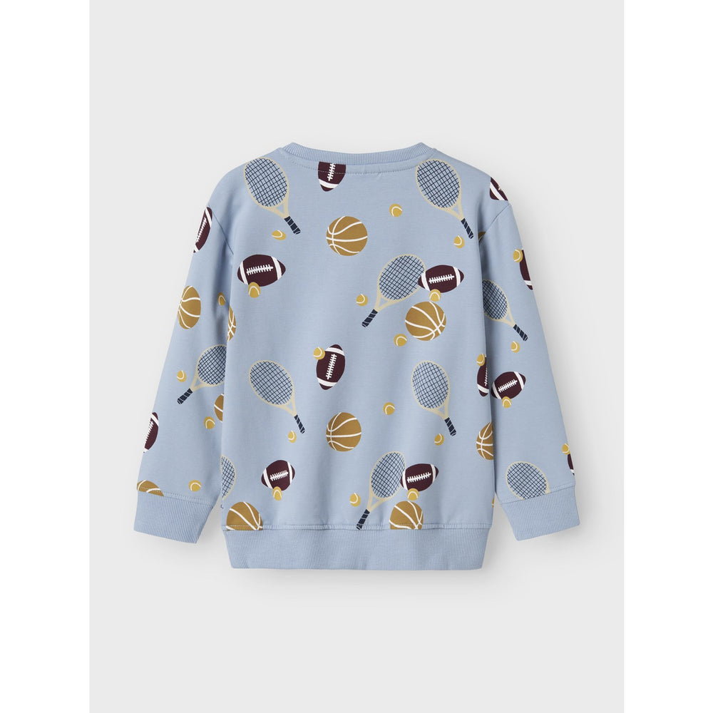 Dress your little one in the Name It Dusty Blue Nmmkeaton LS Nreg Sweat Unb featuring smooth, unbrushed sweat fabric and cozy loops on the inside for maximum comfort. This trendy sweatshirt showcases a charming all-over print with a soft rubber texture, ribbed cuffs for a snug fit, and a classic round-neck design. Perfect for everyday wear, it combines style, comfort, and durability seamlessly. Ideal for active kids, it offers versatility and ease of movement, making it a wardrobe essential for any child.