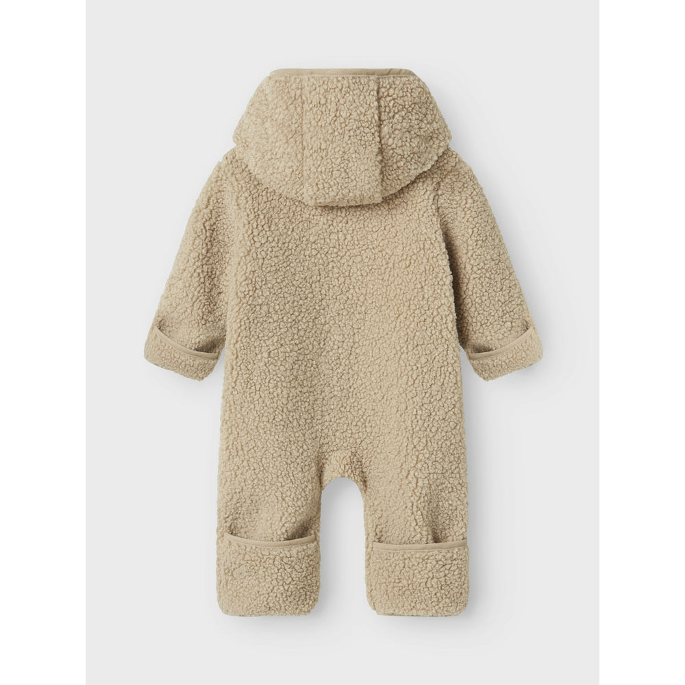Keep your little one cozy and stylish with the Name It Pure Cashmere Nbnmilo Teddy Suit. Crafted from ultra-soft cashmere, this stroller suit features long sleeves with fold-up cuffs and a convenient zip fastening with a protective zip guard to ensure your child's skin stays safe. The legs have specially designed hems that fold over the feet, adding extra warmth during chilly outings. Boasting a chic design, the suit combines functionality with the latest fashion trends, making it a practical yet fashionable choice for your child. Ideal for everyday wear, this teddy suit from NAME IT, a brand renowned for quality and safety since 1986, ensures comfort, style, and protection for your little adventurer.