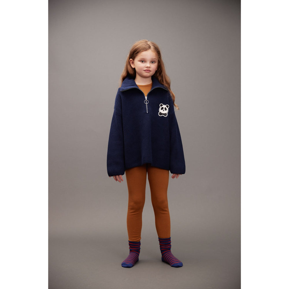 Mini Rodini Blue Panda Patch Chunky Knit Half Zip Sweater
