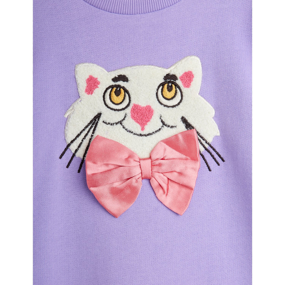 Mini Rodini Purple Cat With Bowtie Chenille Sweatdress