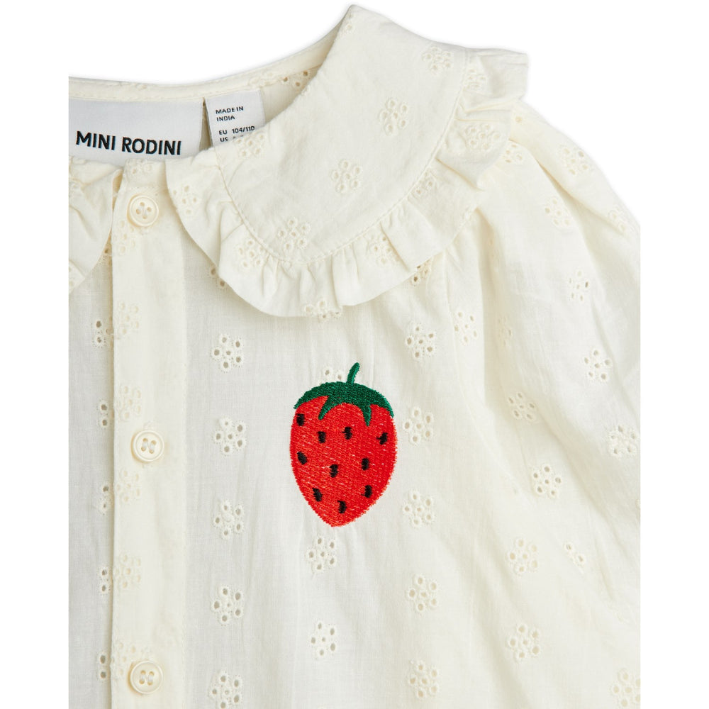 Mini Rodini White Strawberry Emb Schiffli Blouse
