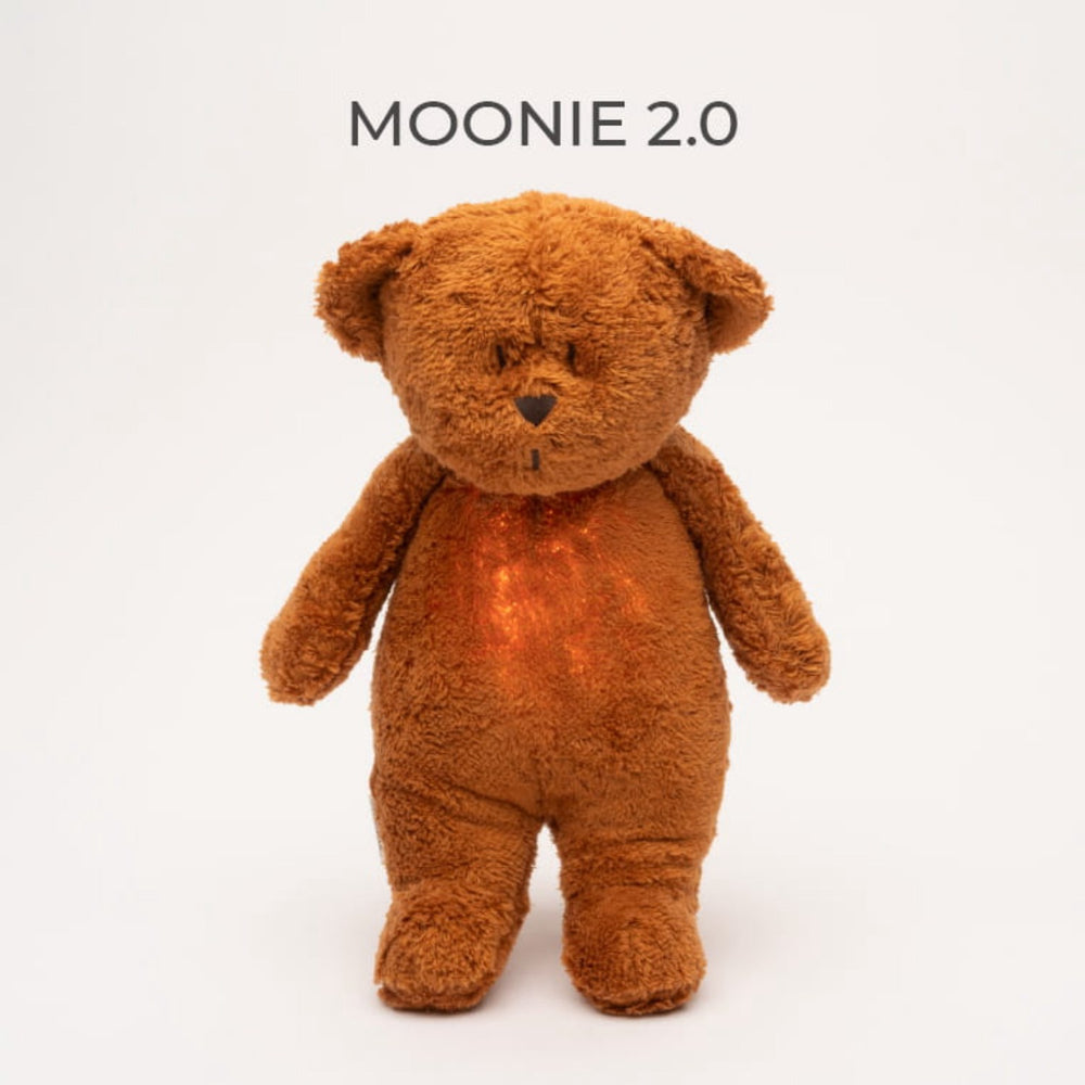 Delight in the comforting embrace of the Moonie Caramel 2.0 Organic Humming Bear, your child's perfect nighttime companion. This upgraded version pairs serene sounds of nature and gentle classical melodies, from heartbeats to Baltic Sea waves, fostering a tranquil environment. Easily adjustable features, like volume control and humming duration, customize to meet your baby’s comfort needs.