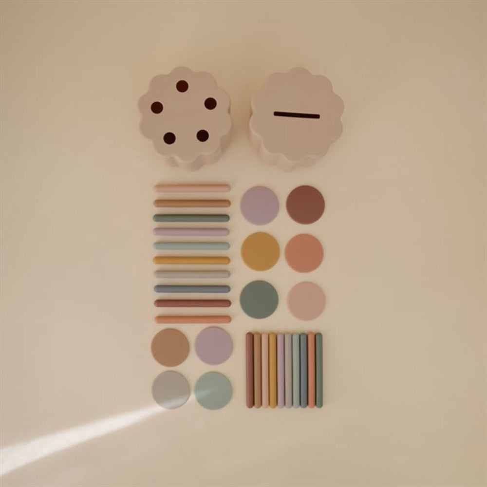 Discover the joys of learning with the Mushie Coin & Tube Sorting Set! Ideal for toddlers, this set not only offers endless fun but also enhances fine motor skills and hand-eye coordination through its engaging sorting and matching challenges. Crafted from high-quality, durable PP plastic, it features a scalloped-edge round box and comes with 20 colorful coins and tubes. Its two interchangeable lids add to the excitement, allowing children to master identifying and matching shapes. Safe, portable, and easy to clean with just warm soapy water, it's perfect for little learners to enjoy while developing crucial early educational skills.