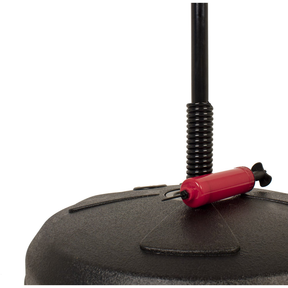 - Extra: Adjustable in height: 126-146 cm Weight: 2.4 kg Foot approx. 15 l which is filled with water or sand Boxing gloves included Pump included