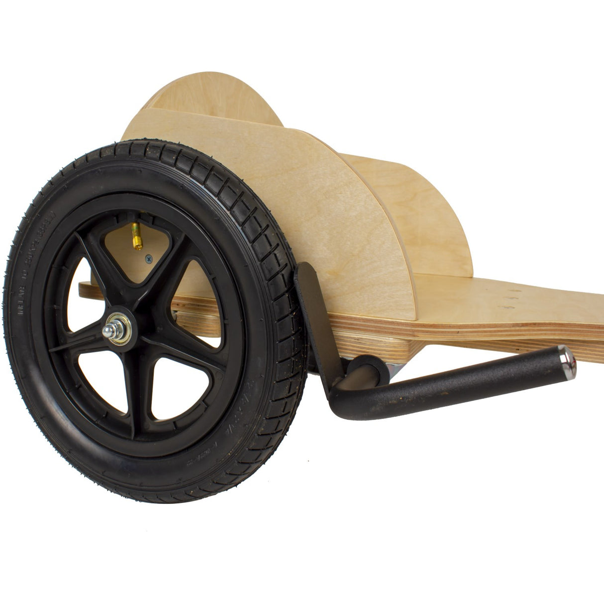 - Extra: Frame: Birch plywood Wheels: Pneumatic wheels with ball bearings - Ø24 cm at the front, Ø32 cm at the back Brake on rear wheels Adjustable length: 90-110 cm Weight: 10.5 kg Age: From approx. 5 years Max user weight: 50 kg Approvals: EN71, CE
