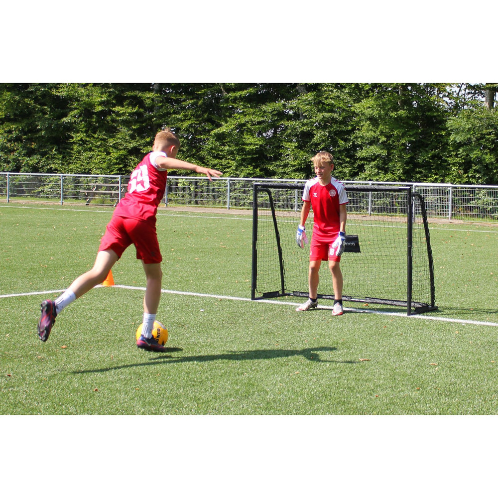 Discover endless fun with the My Hood Munich Football Goal, perfect for enhancing your child's garden playtime! This superb goal is crafted from galvanized steel with a striking black powder coating, ensuring durability and stability with its Ø38 mm pipe diameter and 1.5 mm wall thickness. The included black target cloth aids in precision training, making it an excellent tool for developing sports skills. Lightweight and easy to set up, it’s ideal for young athletes and simple to maintain, promising hours of healthy, engaging outdoor activity.