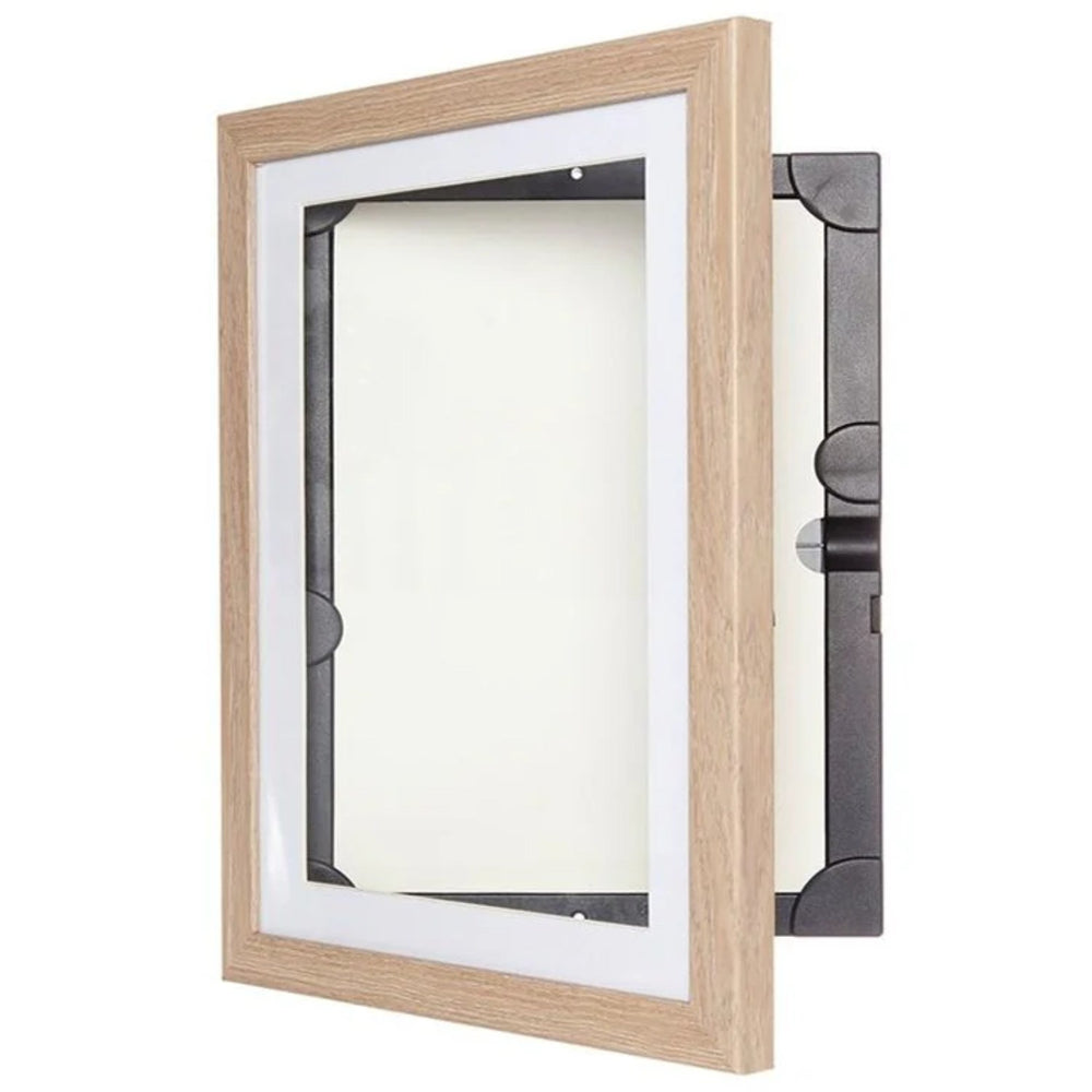 Discover the charm and functionality of the My Little DaVinci A4 Frame - Natural. This well-crafted frame highlights front-opening access, simplifying artwork changes for your child's growing creativity. Designed to showcase A4-sized masterpieces, it includes all necessary hardware for both vertical and horizontal mounting, in addition to a handy kick-stand. The high-quality construction ensures durability whether used in a home or a gallery setting, while the glass front (Perspex for A3 to enhance safety) protects cherished pieces. Ideal for displaying drawings, awards, or photos, this stylish frame enriches any room's decor while encouraging artistic expression and preservation. Materials: Wood, glass/plexiglass Measurements: A3