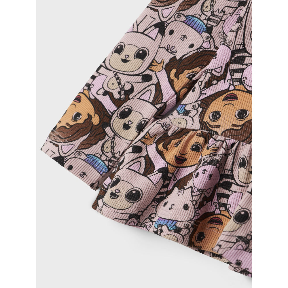 Explore the charming world of Gabby's Dollhouse with this delightful 'Name It Burnished Lilac Nmfsemma Gabby Ls Top Sky'. Fashioned from soft, rib-knit fabric with a vertical striped pattern, this top offers excellent elasticity, ensuring a snug yet cozy fit for your child. The Lilac hue paired with playful prints inspired by the animation adds a spark of whimsy and fun, making it an adorable addition to any young wardrobe. This top features a classic round neck and long sleeves that make it suitable for both cooler days and layered looks. It's designed with a standard fit, balancing comfort with movement, perfect for everyday play and special adventures alike. The material is easy to care for, keeping parents and guardians in mind. Ideal for fans of the Gabby’s Dollhouse series, this top not only brings the magic of mini-worlds and kitty adventures to life but also offers a safe wearing experience with attention to safety standards. Let your child dive into their imagination and explore endless storytelling possibilities with this unique and enchanting top!