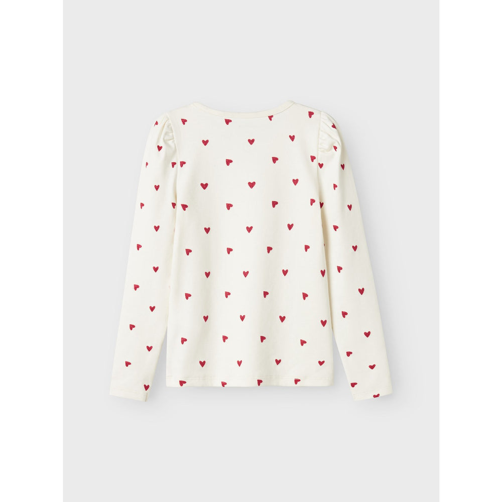 Introducing the charming Name It Cloud Dancer Dheart Blouse! This top features a delightful rib knit design with a vertical stripe pattern and superb elasticity, ensuring a snug yet comfortable fit. Adorned with sparkling glitter details and a playful all-over print, it's ideal for both daily wear and special events. With long sleeves and a classic round neck, this slim-fit blouse combines style with wearability. Crafted for easy care, it's a stylish yet practical addition to any child's clothing collection. Perfect for pairing with jeans or skirts, it offers endless possibilities for fashionable outfits that kids will love.