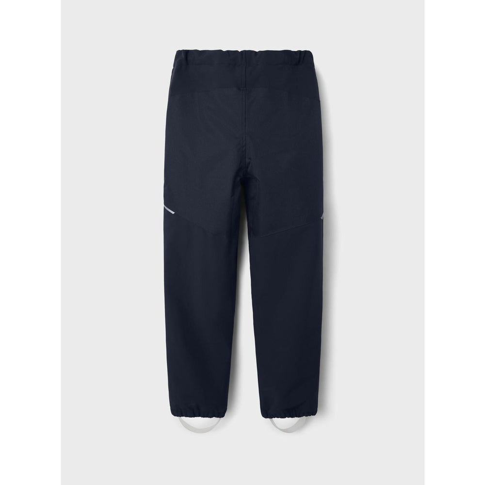 Introducing the Dark Sapphire Alfa Pants from NAME IT — your child's new go-to for all-weather protection and style. These softshell trousers are crafted in a durable and high-performance fabric, which is waterproof, breathable, and windproof, designed specifically for the unpredictable weather of transitioning seasons. Featuring an 8,000mm waterproof rating and 3,000g/m2/24h for breathability, these trousers ensure your child remains dry and comfortable during outdoor play.
