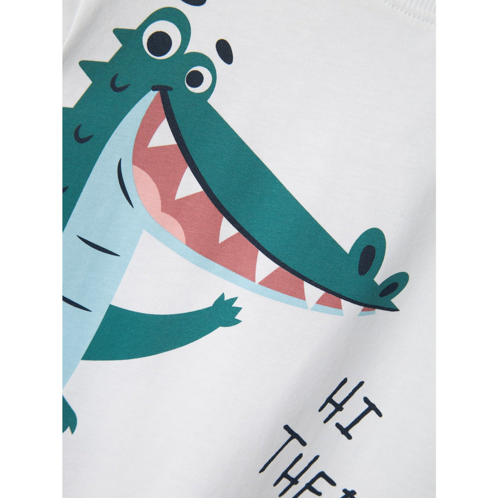Introduce the ‘Name It Lucent White Nmmhelge Ss Nreg Top Pb' to your child's clothing collection for a blend of style and comfort. Crafted from soft and stretchy jersey fabric, this T-shirt ensures a gentle touch while providing ample freedom of movement. It features a charming round neck, short sleeves, and a delicate pigment print that stands out on the light fabric. Its regular fit promotes easy wearability. Ideal for both casual outings and festive gatherings, this top effortlessly maintains its excellence through regular cotton care.