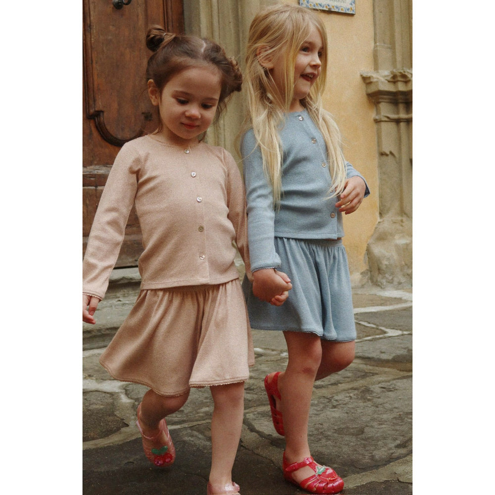 Discover the charming versatility of the Konges Sløjd Sleet Roli Cardigan, perfect for your little one's wardrobe. This soft, stretchy rib cardigan is crafted for dual wearability—stylish enough to be worn as a standalone blouse or as a traditional layering piece. Featuring a delightful design in soothing colors, it’s tailored to comfort and easy care, promoting both style and practicality for children’s daily adventures. Materials: 60% COTTON 38% LUREX 2% ELASTANE