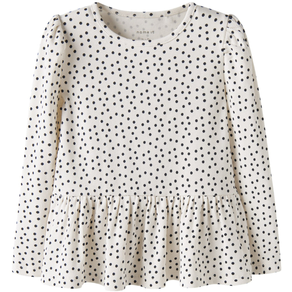 Brighten up your little one's closet with the delightful Name It Gardenia Nmftenna Ls Top Pb. Designed with cozy rib knit material, it features a charming vertical striped pattern, offering both exceptional comfort and a classic style. Boasting a round neck, long puff sleeves, and enchanting peplum details, this top is a versatile piece for both daily wear and festive events. The repeated print across the surface adds a playful touch. With its regular fit, it ensures easy movement for all-day wear, making it an ideal addition to any child's wardrobe.