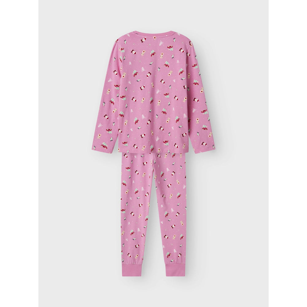 Introducing the Name It Fuchsia Pink Christmas Elements Vismas Nightset, perfect for celebrating the festive season! Crafted from cozy jersey, this pyjama set offers a soft touch, both inside and out, ensuring optimal comfort with its lightweight and stretchy features. Adorned with a delightful Christmas print spread uniformly across, it features long sleeves for warmth. This nightset not only promises festive cheer but also comfort and style for your child’s bedtime. Easy to care for, it's an ideal addition to your child's nighttime wardrobe. Materials: 95% Cotton, 5% Elastane