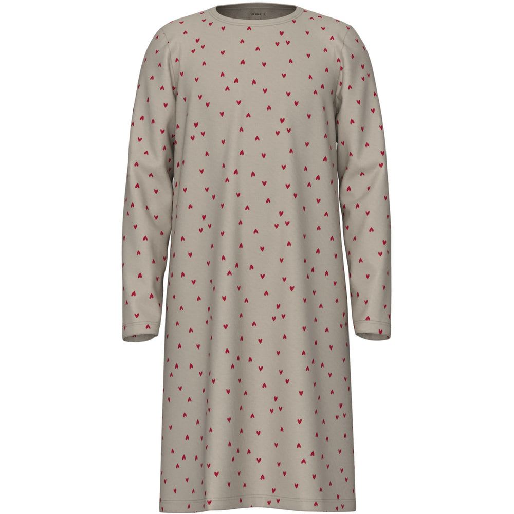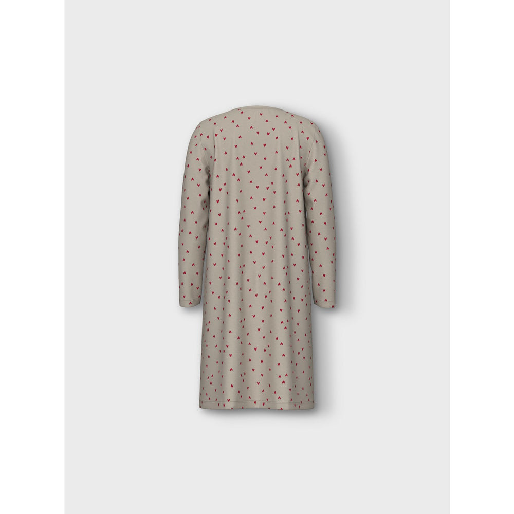 Introducing the adorable Name It Peyote Nightgown, perfect for cozy bedtime stories and sweet dreams. Crafted from soft, breathable material, it features a charming hearts pattern in a soothing peyote color. This nightgown offers a snug fit, ensuring comfort all through the night. Its easy-care fabric makes it a breeze to maintain, ensuring it remains a favorite. Ideal for nightly wear, your little one will adore its style and comfort. Materials: 95% Cotton, 5% Elastane Materials and care: Wash with similar colors Washing instructions: Maximum Washing Temperature 40°C - Normal Process