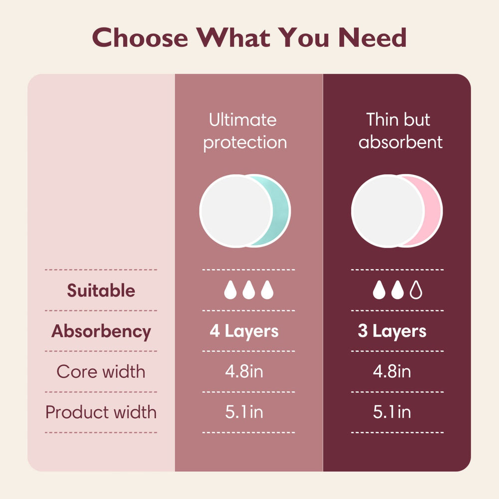 Discover the Momcozy Natural Reusable Nursing Pads, a 14-pack set designed for utmost comfort and convenience. Featuring a patent-pending one-way moisture fabric, these pads swiftly absorb breast secretions keeping you dry and comfortable. Choose from thin and soft pads for light leakage or opt for the Ultimate Protective variant for increased leakage and nighttime security. Each pad boasts a 4-layer absorbent core and a waterproof outer layer, providing robust absorption and leak-proof assurance. Included are wet and dry separation bags, ensuring hygienic storage and easy portability. Eco-friendly and durable, these pads are an ideal choice for eco-conscious new mothers seeking reliable breastfeeding support. Materials: Cotton