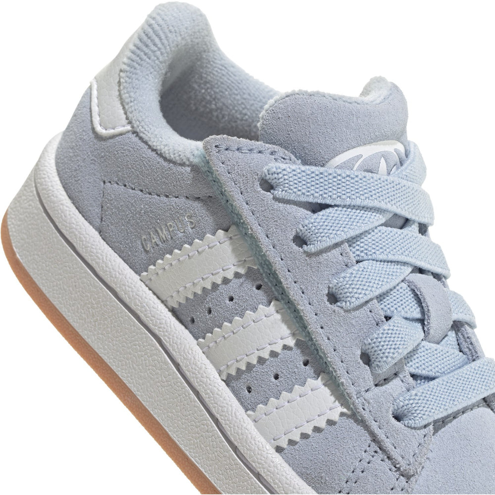 Delight in watching your little ones take their first stylish steps with the adidas Originals Campus 00S Cf El I Sneakers. Crafted from premium soft leather and plush suede in a dreamy Crystal Sky/Ftwr White/Gum 2 colorway, these sneakers are as adorable as they are functional. They come equipped with stretchy laces and a handy hook-and-loop strap, ensuring a snug and secure fit that's easy to manage. The flexible outsole is designed to comfortably accommodate the natural movement of tiny feet. Perfectly blending iconic design with practicality, these sneakers are an essential addition to your baby's wardrobe, adding a touch of charm to any outfit while promising ease of wear and care. Closure: Lace-up with hook-and-loop closure Fit: Regular Materials: Upper: Leather, Synthetic, Lining: Textile, Sole: Rubber Washing instructions: Remember to follow washing and user instructions Extra: Campus-specific Y2K branding on tongue, Trefoil branding on heel tab, Campus wording on lateral side, adidas branding on sockliner, serrated three stripes