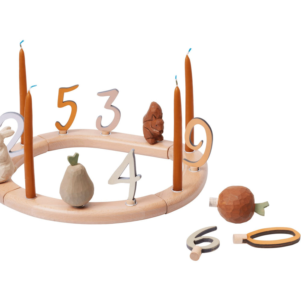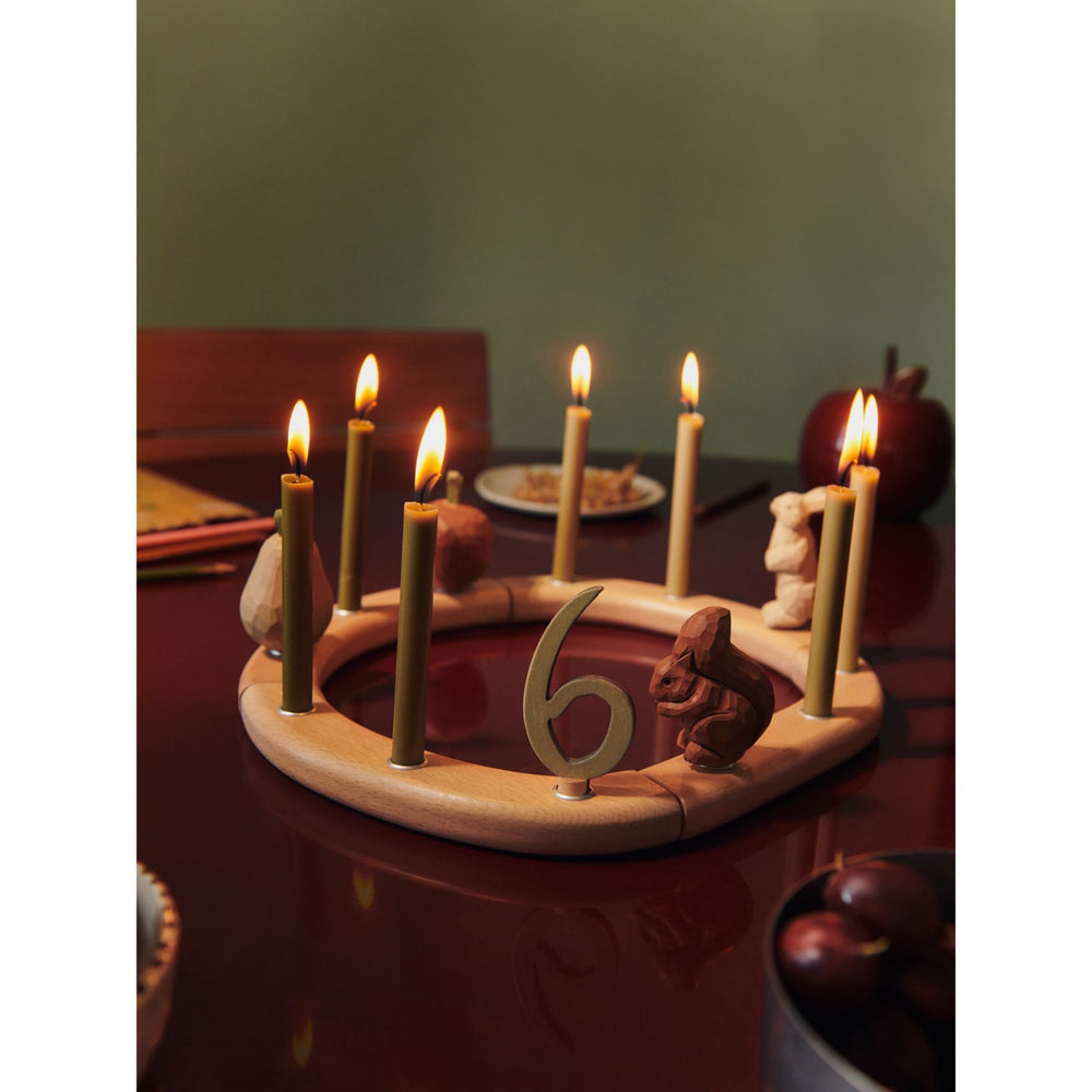 Bring the magic of celebrations home with the Ferm Living Multi Loopi Celebration Ring. Designed to evoke a playful pond landscape, this party decoration enhances any birthday or family gathering. Crafted from sustainable FSC™-certified wood, its versatile, modular shape can transform from a complete circle to an elegant table runner, adapting to your space and style. Personalize each event with the included numbers and charming figurines. Not just visually delightful, it's a practical size with a 30 cm diameter, ensuring it fits perfectly as a centerpiece. Celebrate milestones and create lasting memories with this enchanting addition to your family traditions.