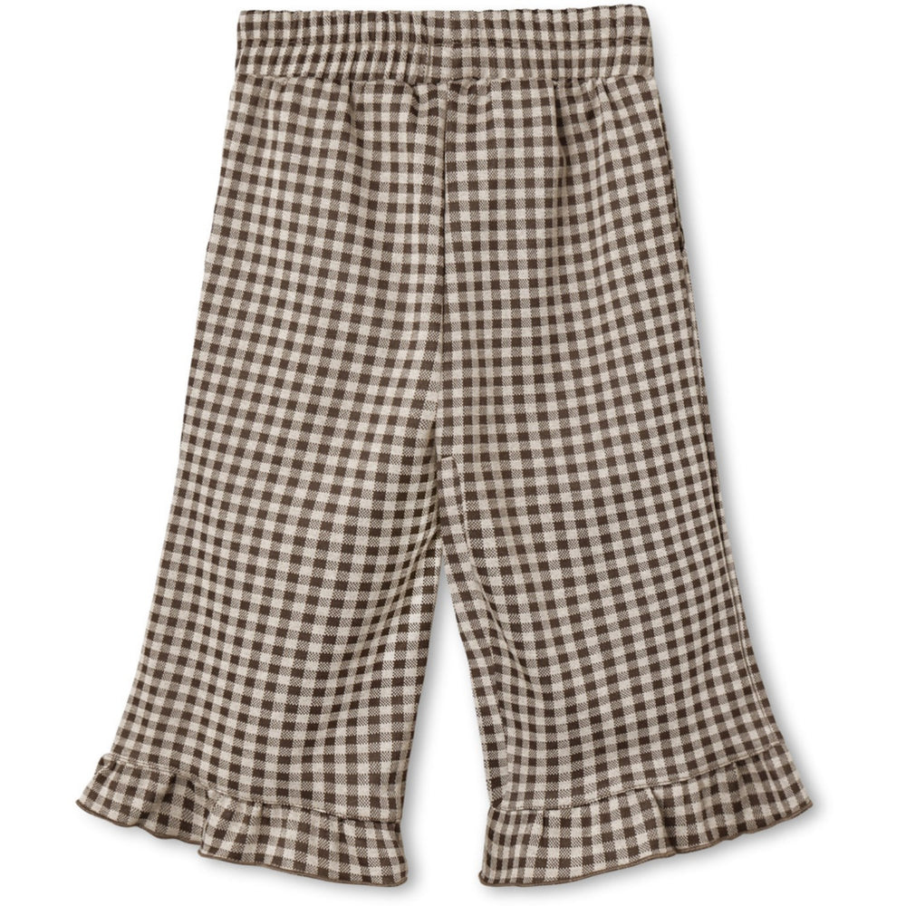 Introduce your little one to the charming comfort of our Fliink Sandshell / Coffee Bean Ella Pants. Crafted with 54% recycled polyester and 45% organic cotton, these long pants not only support sustainability but also promise softness and durability. Featuring a delightful checkered pattern and a playful ruffled hem, they bring a fun twist to everyday wear. The elastic waistband ensures a snug, comfortable fit, while the side pockets add a practical touch. Perfectly designed to cut at the ankles, they are ideal for staying cozy during the cooler months. Caring for these pants is hassle-free—simply machine wash on a gentle cycle at 30°C and avoid tumble drying. Stylish, sustainable, and easy to maintain, the Ella Pants are an excellent choice for both comfort and style in children's daily outfits.