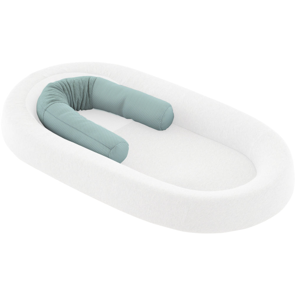 Introducing the Träumeland Green Nest Reducer Air in Green Melange – the perfect addition to your child's nursery. Crafted with soft, breathable materials, this bed bumper ensures ultimate comfort while providing essential protection. The ergonomic design cradles your baby, promoting a safer, snug environment. Ideal for stimulating a sense of security, this nesting solution beautifully blends functionality with a soothing aesthetic, making it a must-have for your little one’s early developmental stages. Filling: 100 % polyester Materials: 100 % cotton Measurements: 80 cm Washing instructions: 60 degrees, suitable for gentle machine drying Certifications: OEKO-TEX STANDARD 100, 47693 OETI
