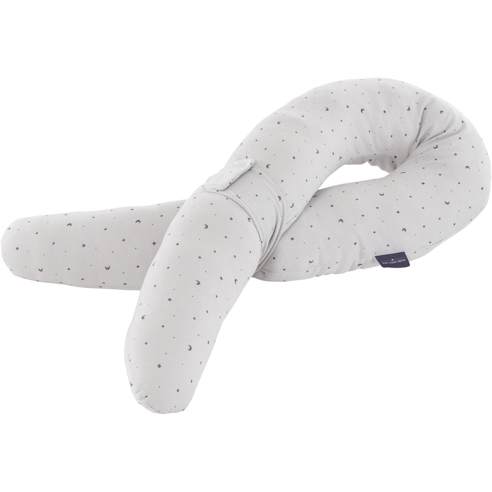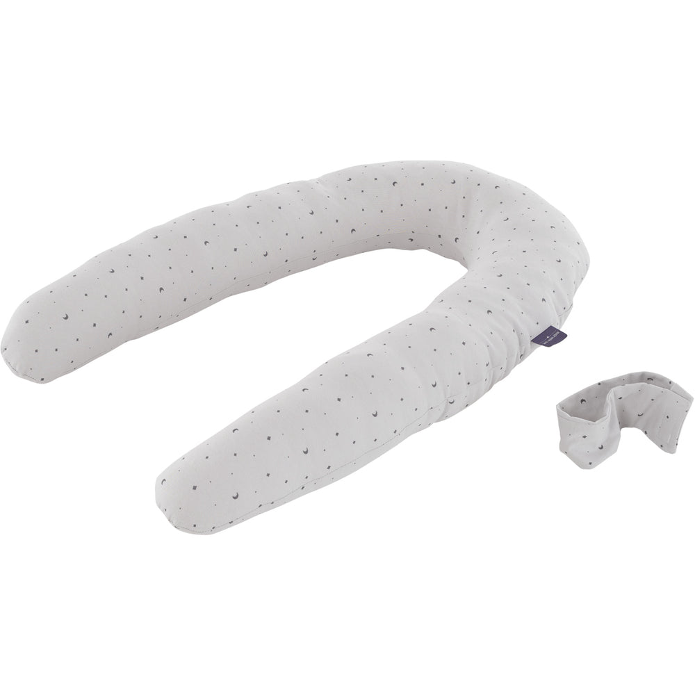 Introducing the Träumeland Grey Cuddly Nest in Moon Grey - a perfect addition to any child's room. This bed bumper is designed to enhance your child's body awareness and motor skills. Not only does it offer a snug, relaxing space for comfort, but it also supports healthy muscle and spine development. Its functional design ensures safety, doubles as a storage solution, and features a stylish, kid-friendly aesthetic that blends seamlessly with any decor. Ideal for day-to-day relaxation, it also serves as an educational tool to foster growth and development in young children. Filling: 100 % polyester beads Materials: 92 % cotton, 8 % elastane Washing instructions: 40 degrees, suitable for gentle machine drying Certifications: OEKO-TEX STANDARD 100, 47693 OETI