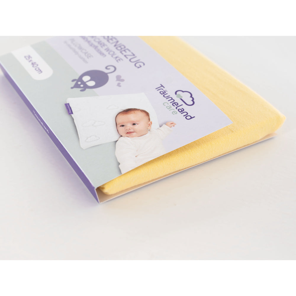 Discover the Träumeland Yellow Pillowcase, a charming addition to your child's bedding collection. Designed specifically for the cloud pillow, it ensures ease of use with a snug fit that's easy to change. Crafted with safety-certified materials, this pillowcase provides both comfort and support for peaceful nights. Its cheerful yellow hue stimulates visual development while keeping maintenance simple – just wash and reuse. Ideal for creating a cozy, organized sleep environment. Materials: 97 % TENCEL™ , 3 % elastane Measurements: 25 x 40 x 3 cm Washing instructions: 60 degrees, suitable for gentle machine drying Certifications: OEKO-TEX STANDARD 100, 47693 OETI