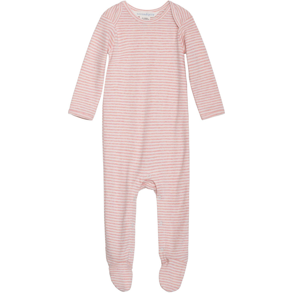 Introduce your little one to the cozy delight of our Serendipity Coral/Offwhite Baby Suit Stripe. Crafted from 100% organic GOTS-certified mélange cotton rib, this soft one-piece suit features a charming stripe design in coral pink and off-white. Long sleeves and feet ensure full coverage, while the handy envelope neckline and snap buttons by the legs offer ease of dressing. Perfect for both comfort and style, it's a must-have in your baby's wardrobe!