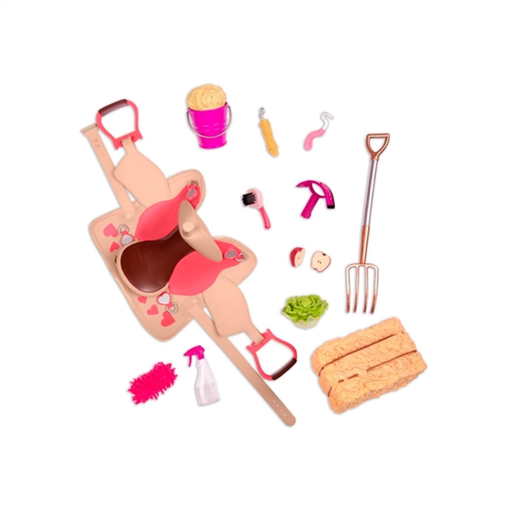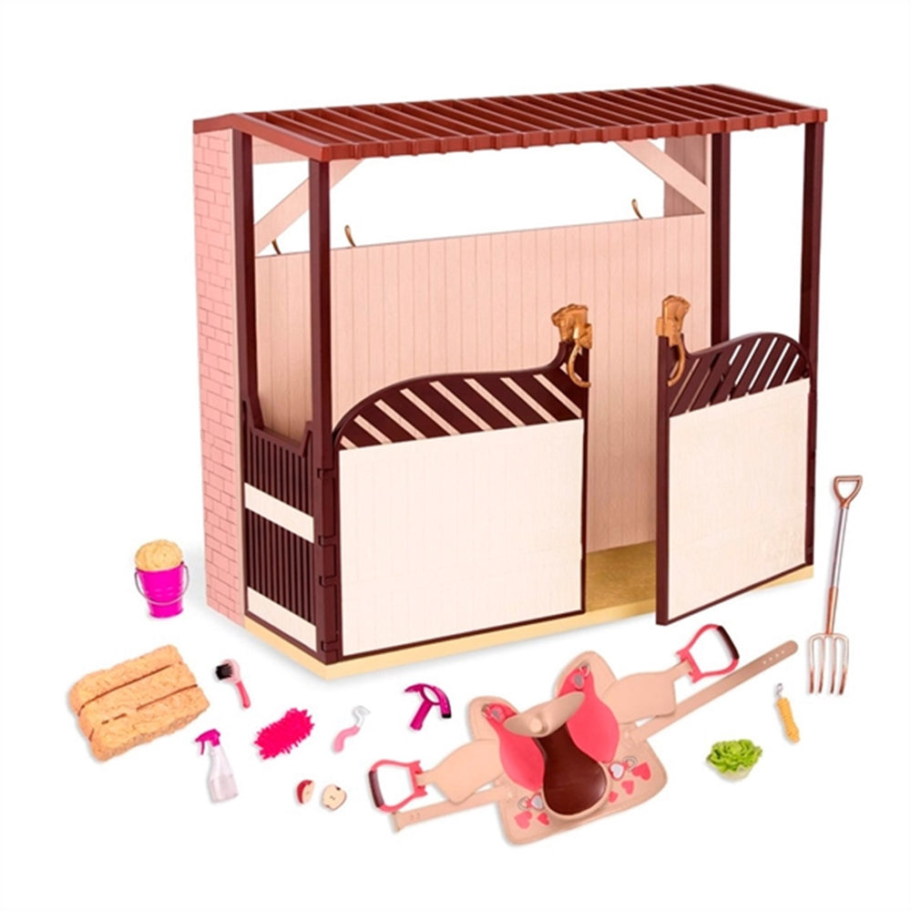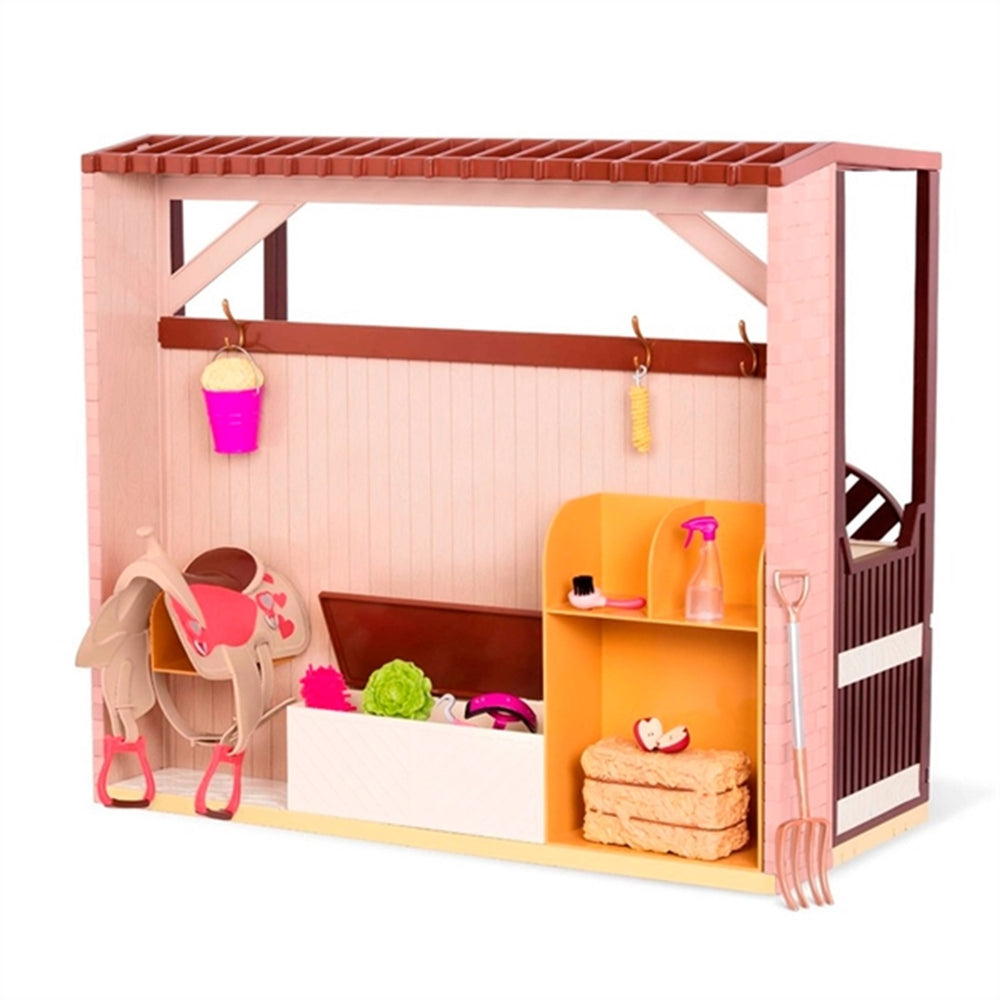 There is room for your horse on one side as well as lots of storage options and a nice little bench if you need a rest. There is also a shelf for brushes, riding helmets and other riding equipment.