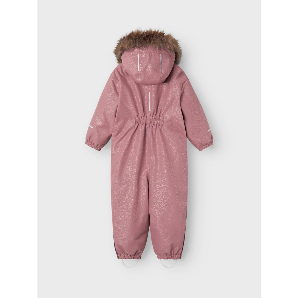 Make winter days more fun and comfortable for your child with the NAME IT Grape Shake Snow10 Suit Frill Glitter Fo snowsuit. This smart suit combines functionality with stylish design, so your child stays warm and dry, no matter the weather. Made from high-quality materials that ensure a water resistance of 10,000 mm and a breathability of 4,000 g/m2/24 hours, this suit is ideal for playing in everything from snow to rain. The snowsuit is designed in a beautiful "Grape Shake" color with an eye-catching glitter print that adds a unique and fun touch. With long sleeves and elastic cuffs as well as a flexible fit with adjustable leg openings and foot straps, it offers both freedom of movement and a snug comfort. Several smart details such as a detachable hood and synthetic fur, reflective elements for safety and a fleece lining make this snowsuit both practical and comfortable. The durability is top notch with 50,000 Martindale and an eco-friendly water-repellent finish without the use of harmful fluorine compounds, making it easy to maintain. This suit is not only a guarantee of warmth and dryness, but also supports the child's well-being and mobility during the winter months.