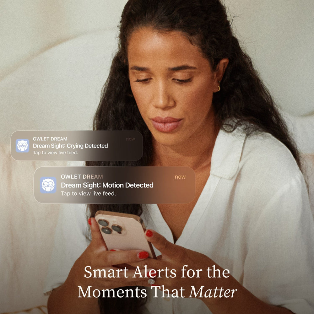 Ensuring your baby's environment remains optimal, the Owlet Dream Sight monitors room temperature and humidity, sending alerts when adjustments are necessary to maintain a comfortable and safe sleep setting. With its smart alert system, you'll receive instant notifications for sound, motion, and crying, helping you respond promptly to your baby's needs.