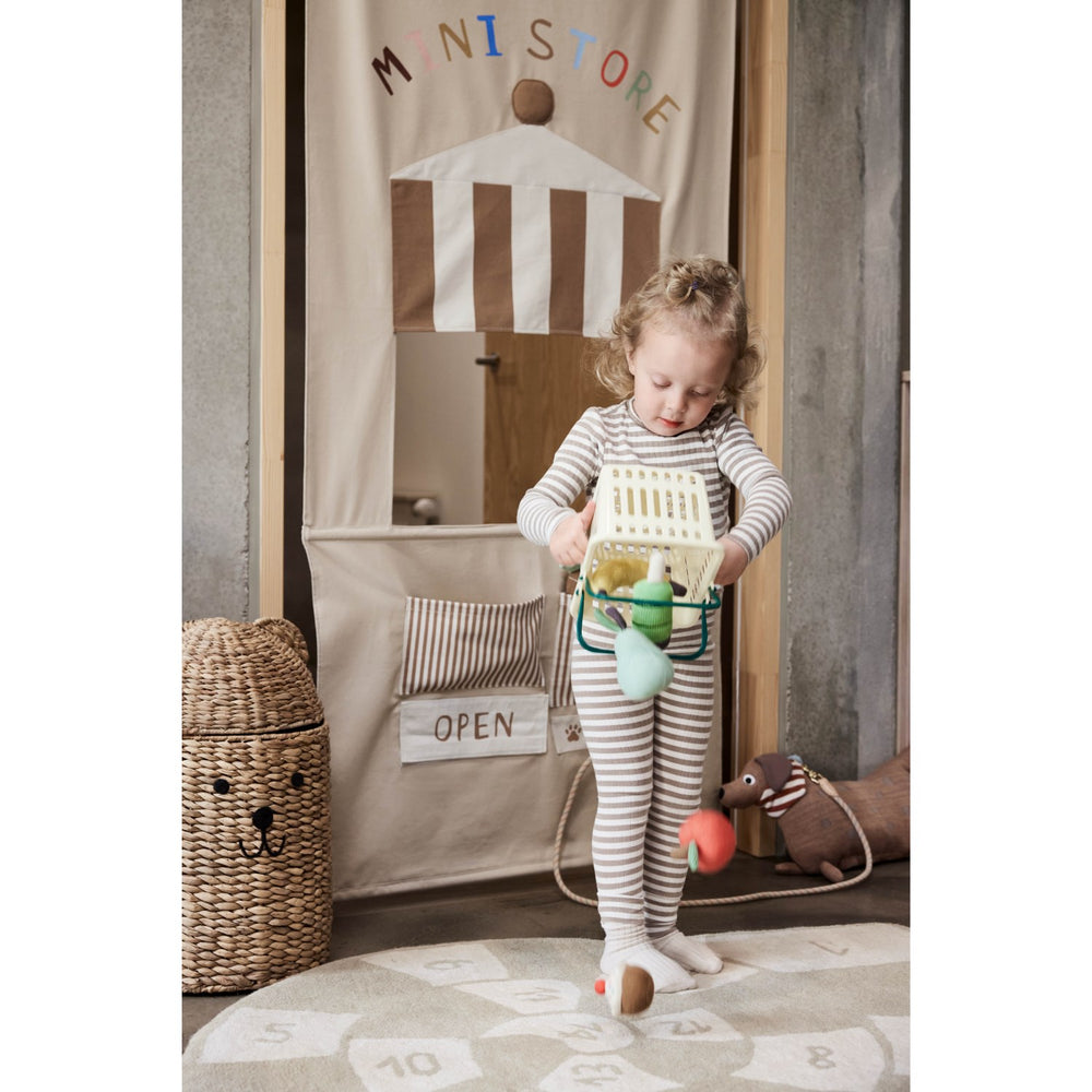 Discover the enchanting world of play with the OYOY Multi Yummy Mini Fruit Set. Crafted from soft and durable 100% cotton with a plush polyester filling, these delightful toy fruits—including an apple, banana, pear, orange, and pineapple—offer a safe and engaging way for children to explore and learn. Designed for tiny hands, this set promotes educational play while ensuring ease of use and maintenance. Conveniently portable, each fruit fits perfectly in the included charming fabric bag, making storage and travel with these playful companions effortless. Ideal for children eager to develop their imaginative skills, this fruit set will add a sprinkle of joy and educational value to their daily play. Materials and care: Do not Iron,Do not bleach,Do not tumble dry,Dry flat,Wash separately,or with similar colours.30 Degree machine wash Certifications: OEKO-TEX