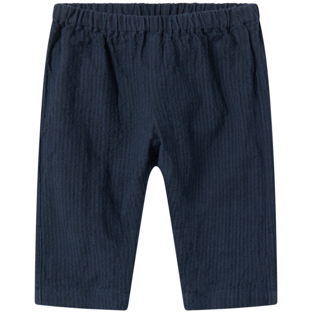 Discover the charm of MarMar's Chambray Dark Blue Stripe Panto Pants, ideal for playful and active kids. Crafted with a soft chambray material, these pants offer a comfortable loose fit, articulate with a stylish dark blue striped design. The elastic waistband ensures a perfect, easy-to-adjust fit while the functional back pocket adds a touch of practicality. These pants ensure easy care and long-lasting wear, making them a must-have in any child's wardrobe. Perfect for daily adventures, they combine fashion with comfort and practicality. Materials: 100% Cotton Washing instructions: Wash - Machine wash 40°C extra gentle, Bleach - Do not bleach , Drying - Do not tumble dry, Ironing - medium, Dry Clean - Do not dry clean Certifications: BSCI Chambray denim in 100% cotton Yarn dyed stripes Quality that patinates nicely and lasts wash after wash Breathable quality Keeps its shape and colour Oeko-tex® - Tested for harmful chemicals