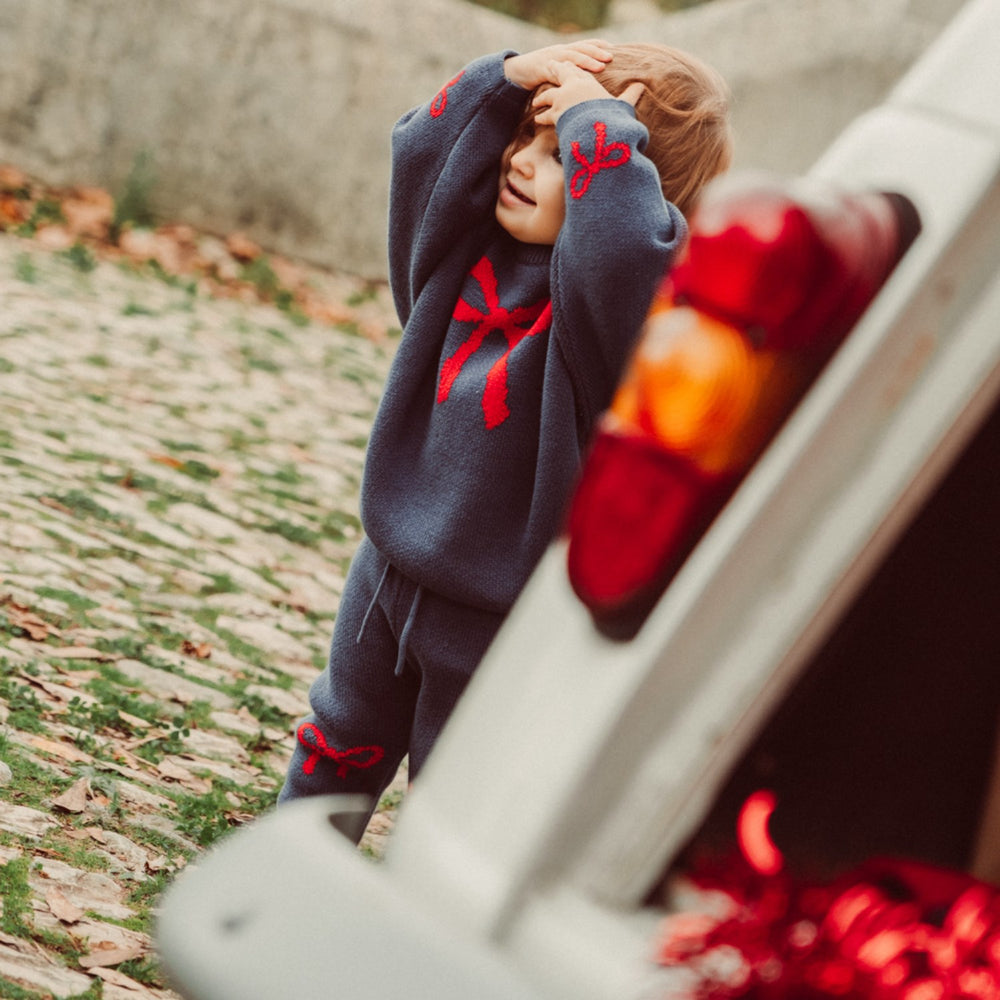 Discover the delightful charm of That's Mine Key Blue Norma Pants, crafted with cozy knits and adorable bow details at the knees. These pants feature an elastic waist and adjustable tie-string for a perfect fit, enhancing both style and comfort. Designed in a vibrant blue, they are easy to care for and perfect for everyday play. Ideal for pairing with the Norma top for a complete look. Materials: 100% Organic cotton Washing instructions: Remember to follow washing and user instructions