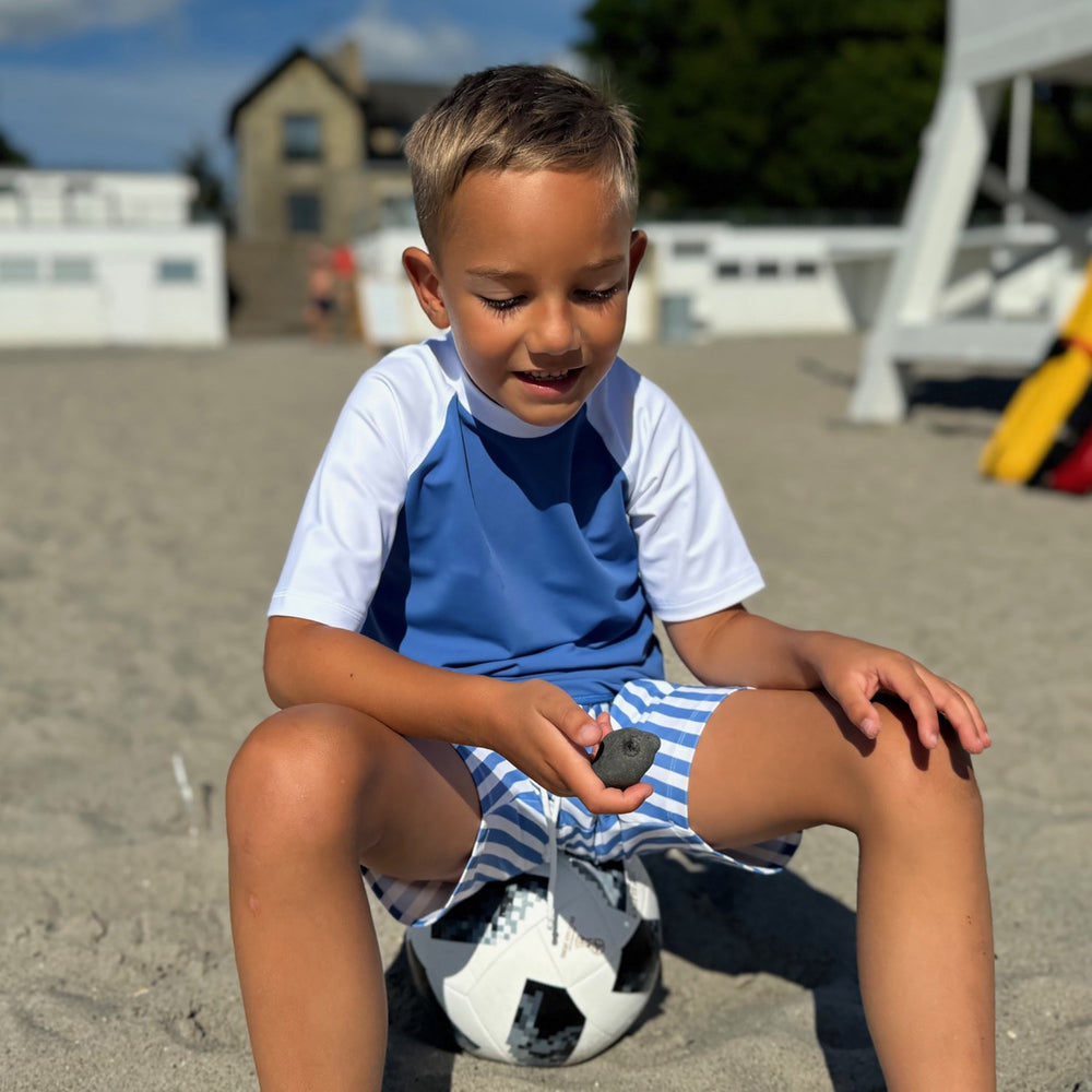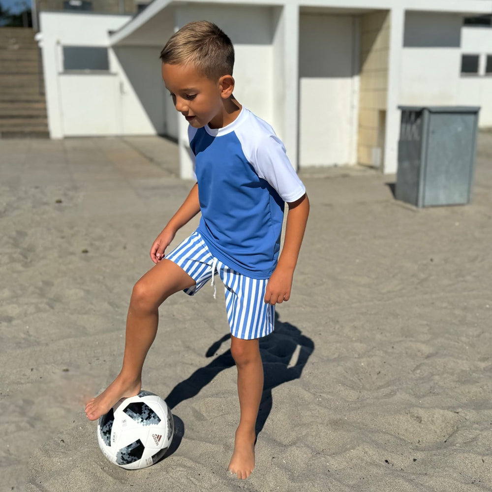 Introduce your little one to the beach with the Petit Crabe Vertical Stripes Alex Swim Shorts! Crafted from Oeko-Tex certified fabric that ensures safety and sustainability, these shorts don't just look good, they're engineered for comfort. Their breathable, quick-drying material offers excellent UPF 50+ sun protection, while the elastic waistband and drawstring make them incredibly easy to wear and adjust. The stylish vertical stripes and short shorts design add a splash of fun, making these swim shorts a smart choice for active children who love to play in and out of water. Dive into comfort and durability, and watch your child enjoy every aquatic adventure with ease!