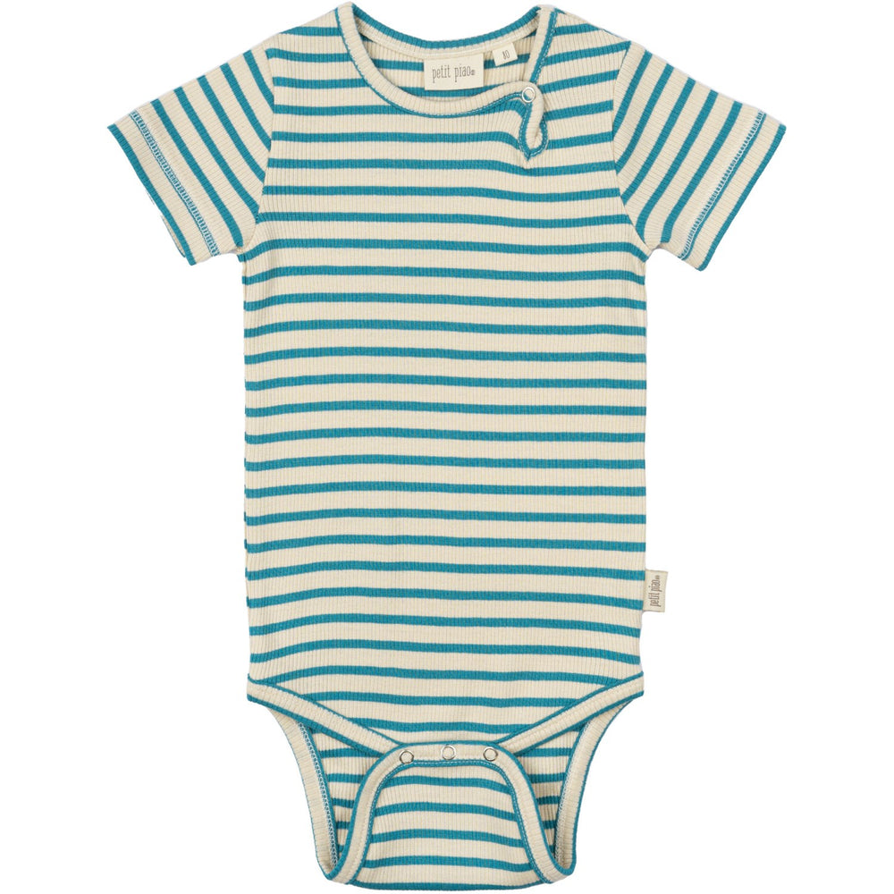 Petit Piao Turquise /Dark Off White Body S/S Modal Striped - 56 is backordered and will ship as soon as it is back in stock.