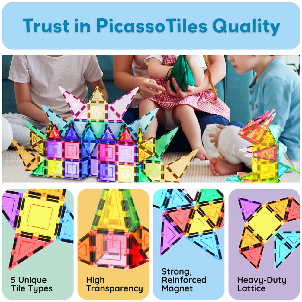 Introduce your child to the enchanting world of construction with the PicassoTiles 61-Piece Magnetic Building Block Set. Designed with safety in mind, these BPA-free and non-toxic blocks are perfect for young creators of all ages. This set not only promotes creativity but is also educational, enhancing spatial reasoning and architecture basics. Easy to use, these magnetic blocks connect effortlessly, making them ideal for solo or group play. They are also easy to store, ensuring a tidy play area after each build. Unlock endless possibilities and foster developmental skills with this engaging and interactive toy. Age: From 3 years