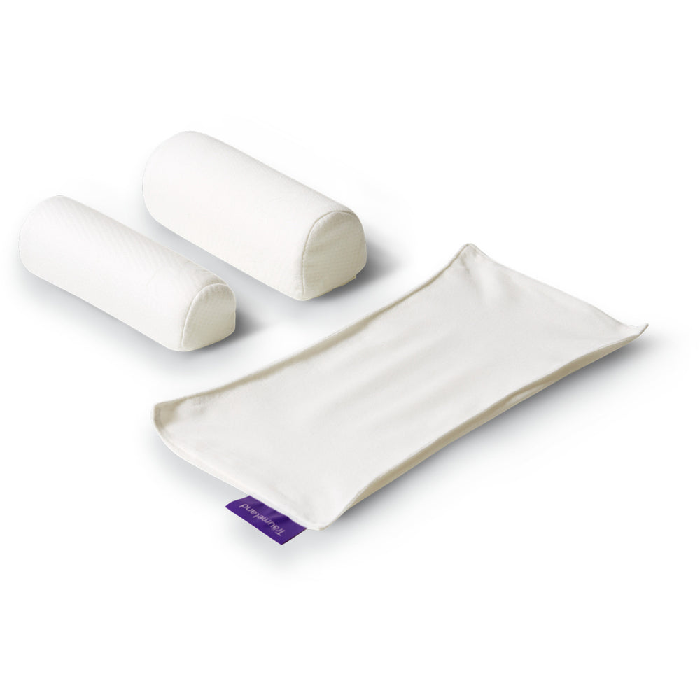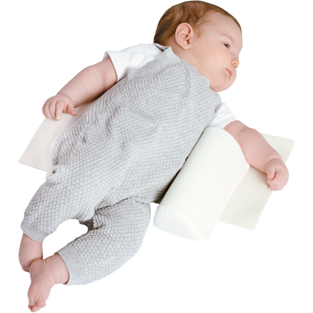 Introducing the Träumeland White Side Positioning Set, expertly designed to maintain your child's safety and comfort while in the side sleeping position. This set features pillows crafted for optimum stabilization, ensuring a secure environment for your infant. Its ease of use, combined with versatility, allows it to fit most baby beds seamlessly, providing both comfort and convenience. Maintenance is hassle-free, offering quick wash and storage capabilities. Perfect for parents seeking a reliable solution to enhance their baby's sleep quality and safety. Age: 0+ month Filling: soft foam Materials: 100 % polyester Washing instructions: 60 degrees, suitable for gentle machine drying Certifications: OEKO-TEX STANDARD 100, 47693 OETI Extra: 3-part set (mat + rollers), Tip: Use the underlay with the finer side facing upwards, the rolls adhere better on this side