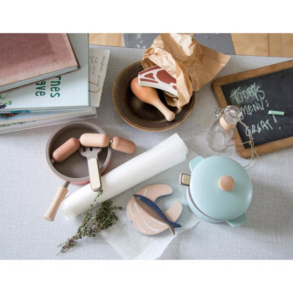 Introduce your little one to the joys of cooking with the Sebra Wooden Fish & Meat Play Food set. Perfectly crafted for young chefs, these wooden pieces are safe, durable, and easy to clean. Ideal for children ages 3 and up, this set encourages educational play and helps develop fine motor skills while ensuring fun and interactive learning. Compact and simple to store, it's an excellent addition to any play kitchen.