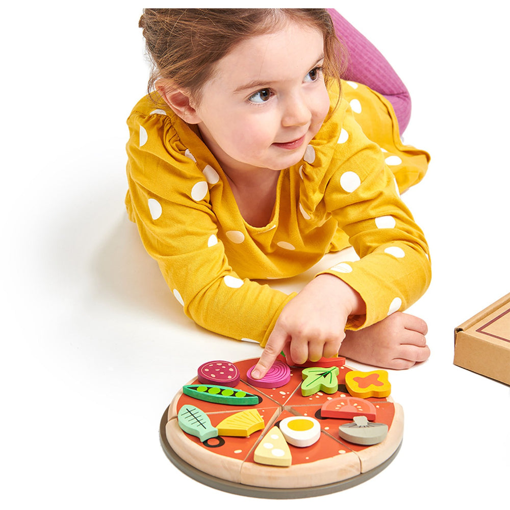 Introducing the Tender Leaf Pizza Fest, the perfect addition to your child's playtime that combines fun and learning in one delightful package. Crafted from high-quality wood, this toy set includes a pizza pre-cut into 6 slices, complete with a pizza tray for realistic play and handy storage. Each slice is designed to adhere to child safety standards, ensuring that playtime is always safe.