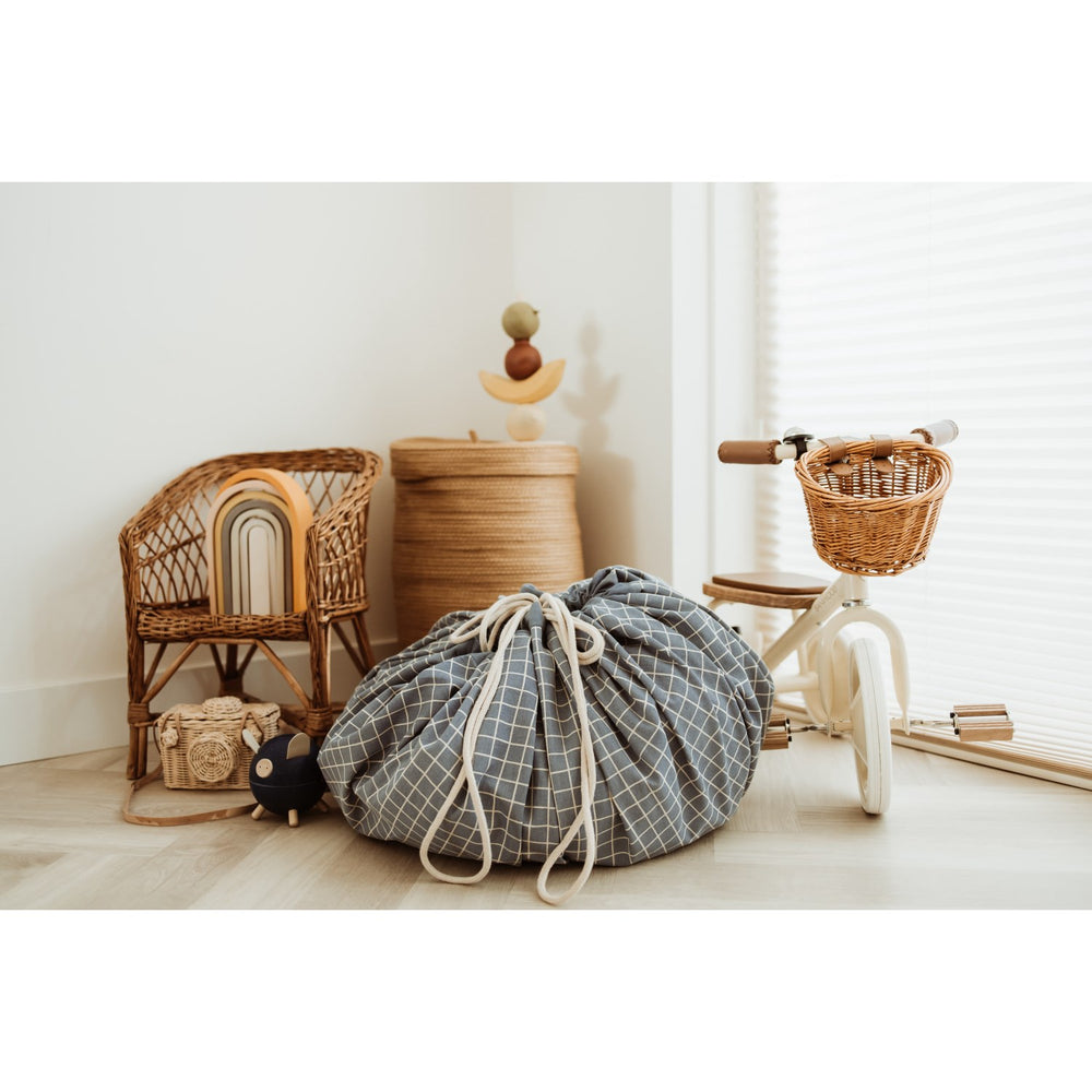 Discover the charm and functionality of the Play&Go Organic Grid Blue 2-in-1 Playmat, designed with a chic, timeless grid pattern and crafted entirely from 100% organic cotton. This eco-friendly playmat spans 140cm in diameter, offering ample space for playful adventures and quiet times alike. It's not just aesthetically pleasing; it's also exceptionally practical, doubling as a convenient storage solution for your child's toys. Ideal for children of various ages, it promotes safety, simplicity in maintenance, and educational engagement through interactive play. Lightweight and easy to fold, this playmat is perfect for both at-home use and on-the-go fun, ensuring your child's play area is both stylish and sustainably smart.