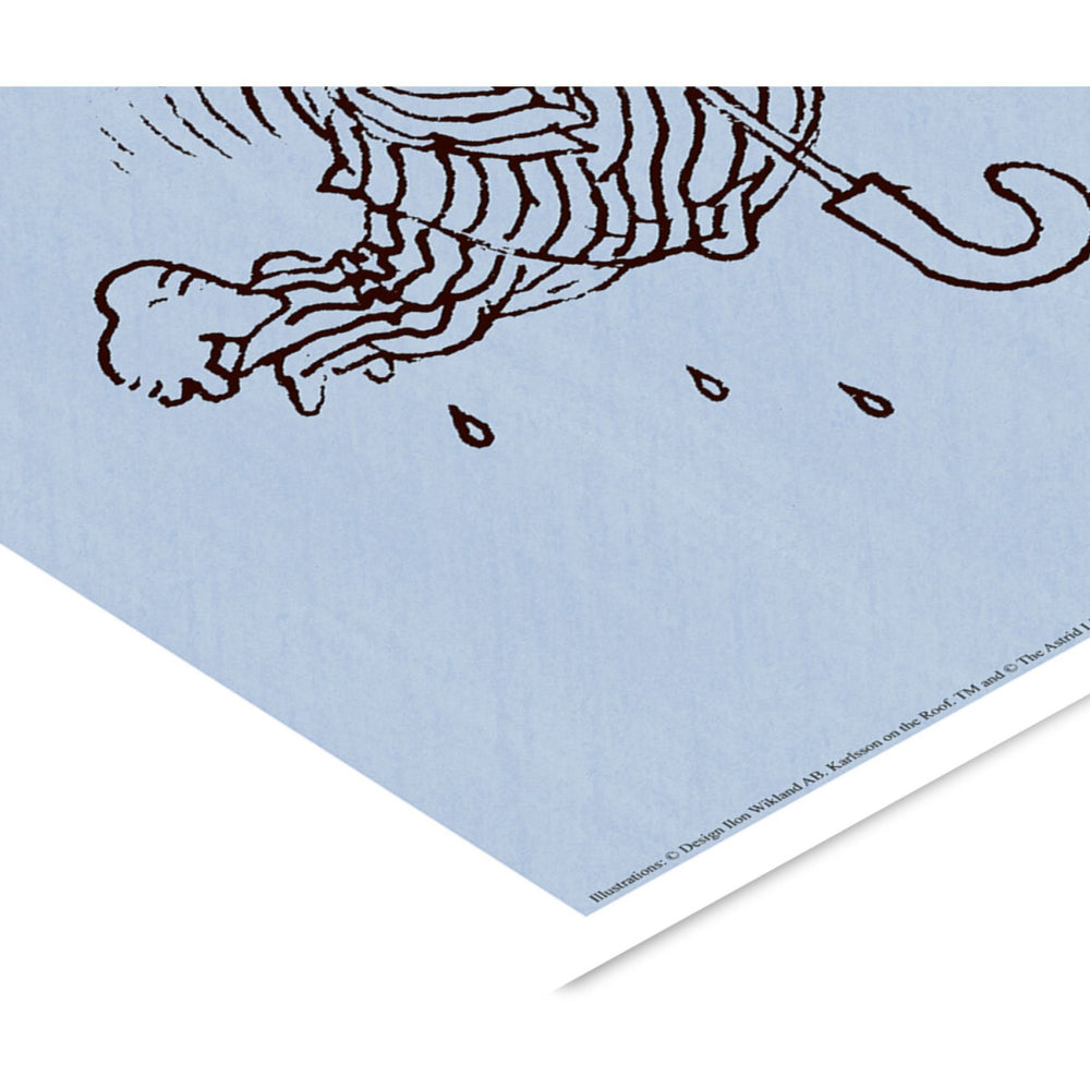 Encourage your child's imagination with the enchanting Astrid Lindgren Umbrella poster, featuring the delightful Karlsson on the Roof. This charming piece, showcased in vivid colors and delightful illustrations, serves as both an aesthetic enhancement and an imaginative stimulus in any child’s room. Specifically crafted in Denmark, this A3-sized poster (297 x 420 mm) is printed on FSC-certified paper, ensuring environmental responsibility while supporting the original artist. Note that frames for this eye-catching poster are sold separately, allowing for customizable decor options. Ideal for enriching a playful, creative atmosphere, this poster makes a perfect gift that marries design with whimsy, sparking joy and creativity in young minds.