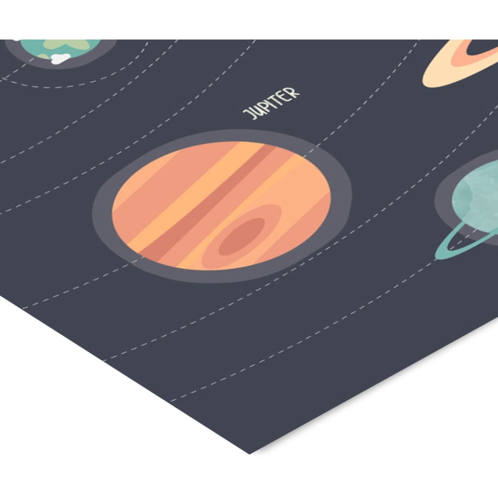 Brighten up your child's space with this captivating Solar System poster! Crafted in Denmark on eco-friendly FSC-certified paper, this charming children's decoration highlights the planets with delightful illustrations and insightful quotes about the universe. Measuring 50 x 70 cm, it's designed not only to appeal visually but to foster curiosity and learning too. Though frames are sold separately, this poster stands out on its own or can complement a collection on a bulletin board. Perfect for new parents looking to nurture a stimulating and aesthetically pleasing environment for their young ones. Materials: Paper Measurements: 50 x 70 cm