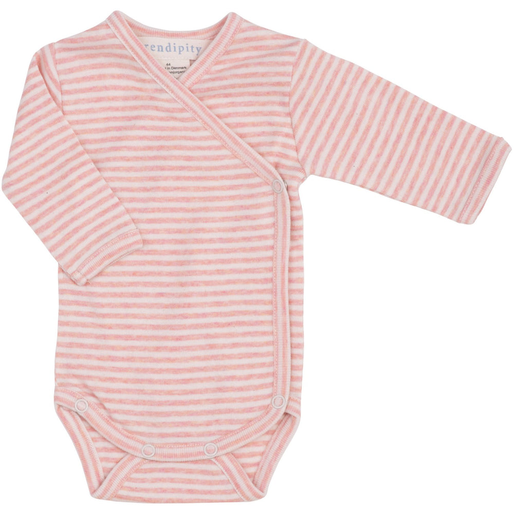 Introduce your newborn to comfort and style with our Serendipity Coral/Offwhite Newborn Wrap Body. Crafted from 100% organic cotton, this soft, GOTS-certified long-sleeved bodysuit features charming stripes in coral pink and off-white. Its practical front-opening design with snap-buttons ensures hassle-free diaper changes, while sizes 38-44 include an additional right-side opening for medical needs. Perfect for everyday wear, this outfit combines ease with eco-conscious fashion. Materials: 100% Organic Cotton Washing instructions: Machine wash at room temperature. Max. 30 degrees. Certifications: GOTS certification