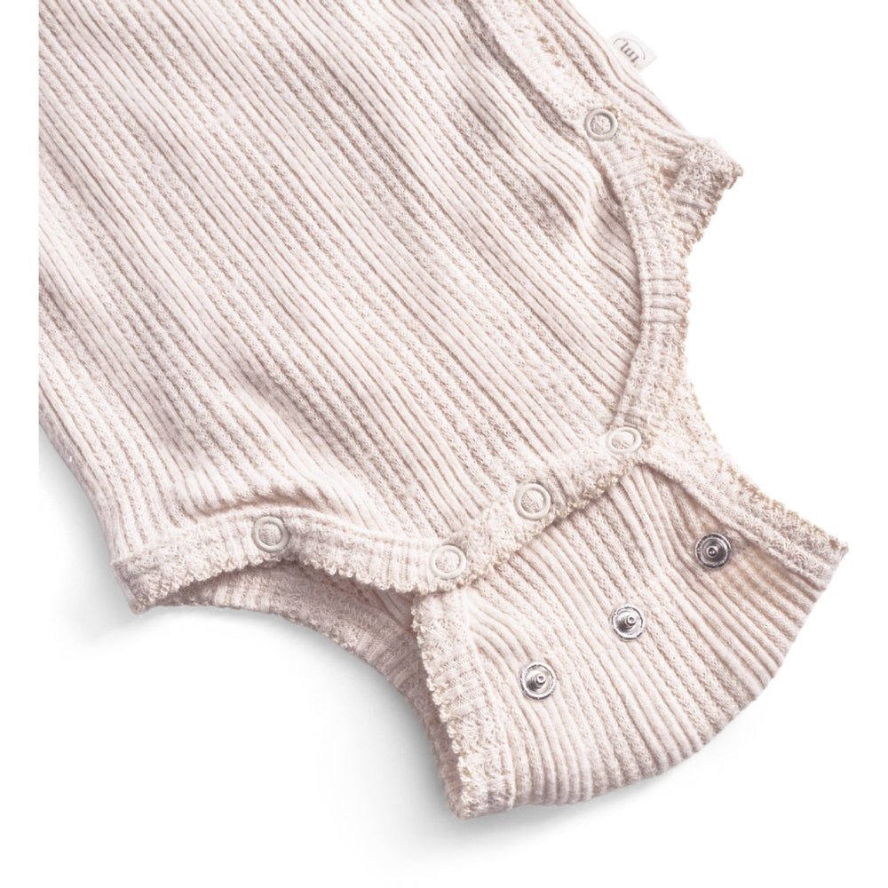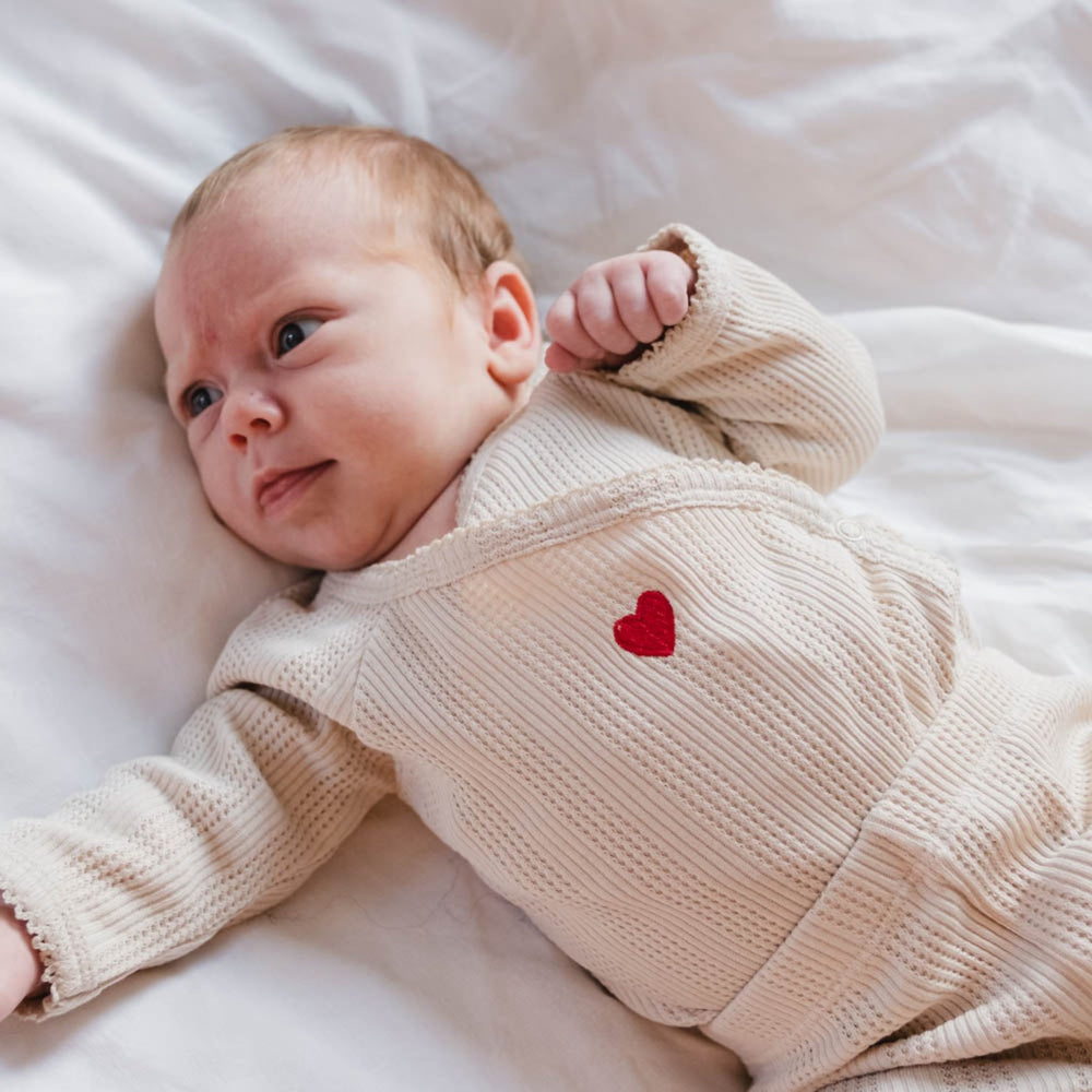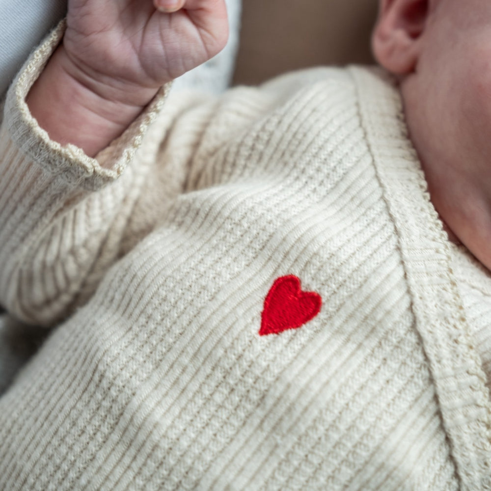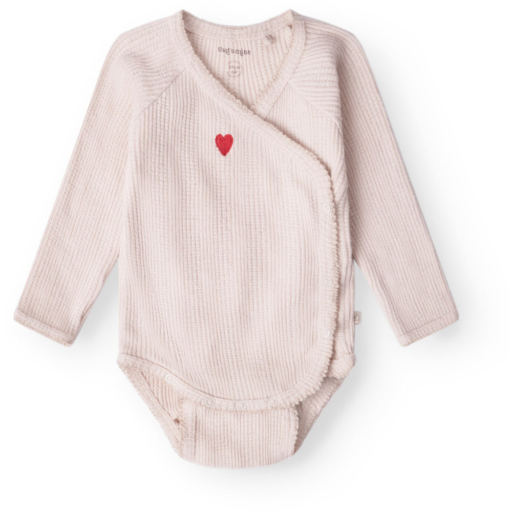 Introduce your little one to comfort and style with the "That's Mine Perfectly Pale Silke Wrap Bodystocking." Crafted for the delicate skin of newborns, this bodysuit features a charming wrap design enhanced with exquisite detailing. The soft, pale hue complements the gentle pattern, adding a touch of elegance. Ensure a perfect fit as your baby grows with the dual rows of adjustable snaps. This bodystocking not only promises ease of wear and care but also keeps your baby comfortable all day long. Perfect for everyday charm, it's an essential addition to your newborn’s wardrobe. Materials: 100% organic cotton Washing instructions: Remember to follow washing and user instructions