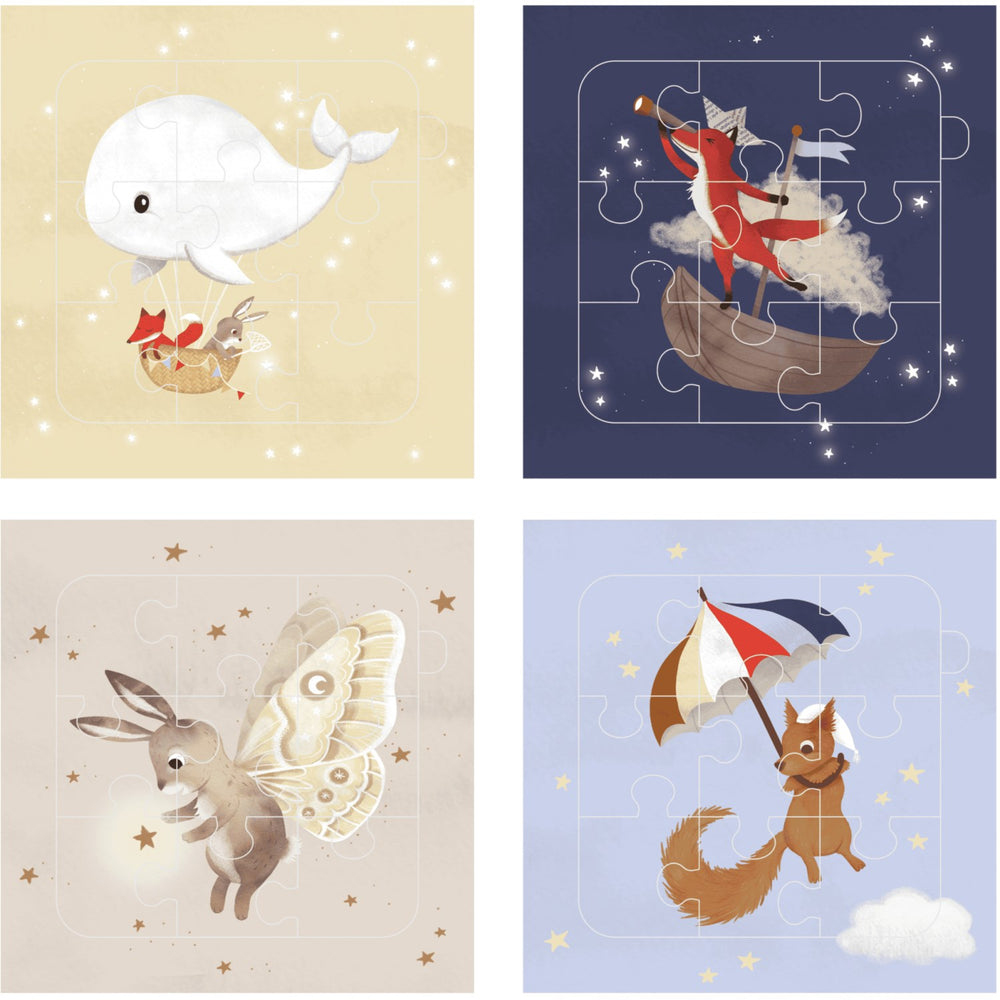 Enjoy the magical illustrations as whimsical animals soar across starlit skies, sparking storytelling and creative play. Recommended for children aged 3 and up, the Dreamy Adventurers Puzzle Book from FILIBABBA is an excellent addition to any young child's learning toolkit, combining safety, educational value, and endless fun.
