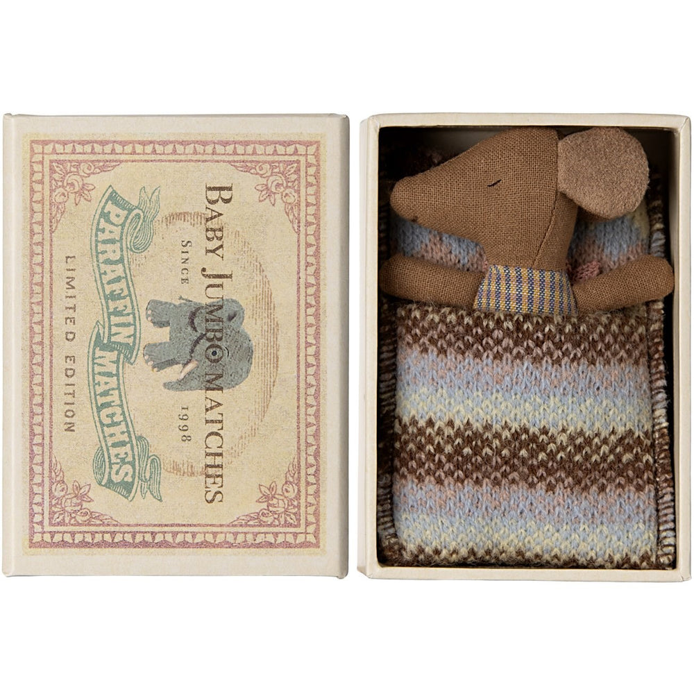 This cute Maileg mouse is ready for hours of play and sleeps well in the matchbox when the game is over. The clothes and bedding come in unique patterns and beautiful colors.