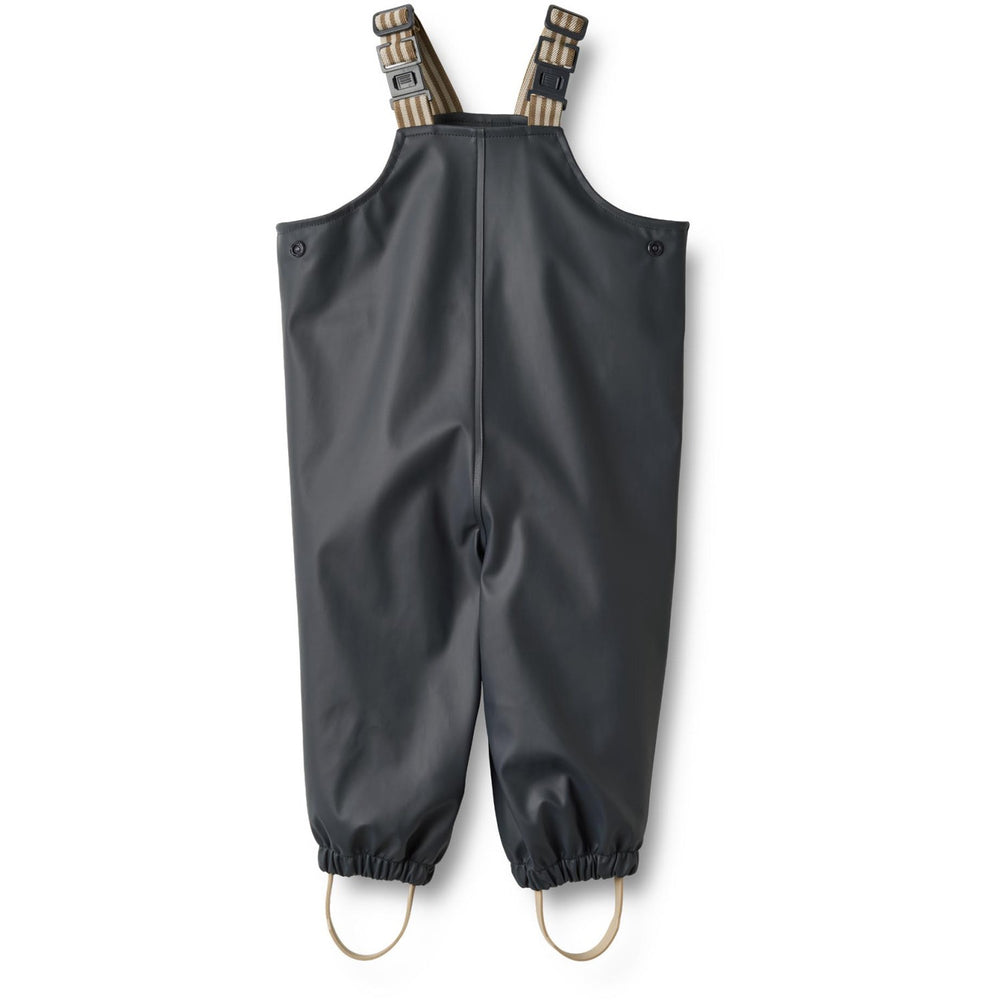 Brighten up rainy days with the charming Wheat Ink Rainwear Charlo Overall for babies. Expertly crafted from 100% recycled polyester with a water-based polyurethane coating, this overall ensures your little one stays dry and cozy. Designed not only for protection from the elements, with an impressive 8,000 mm waterproof rating, but also for comfort, this piece features adjustable elastic suspenders, press buttons at the waist, and elastic hems to ensure a snug and secure fit. The underfoot rubber straps keep everything in place, even during active play. Safety is paramount, which is why the thoughtful inclusion of reflectors makes your child more visible during low-light conditions. Maintenance is a breeze as the durable, dirt-resistant fabric can be quickly wiped clean with a wet cloth. Adorned in beautiful, hand-drawn prints created by Wheat's talented in-house team, these rain overalls offer a delightful blend of style and functionality. Available in a range of beautiful colors, they pair wonderfully with Wheat's thermal layers for cooler days. Plus, the outfit comes certified by Standard 100 OEKO-TEX® for environmental and skin-friendly apparel, making it a guilt-free and stylish choice for your child’s wardrobe.